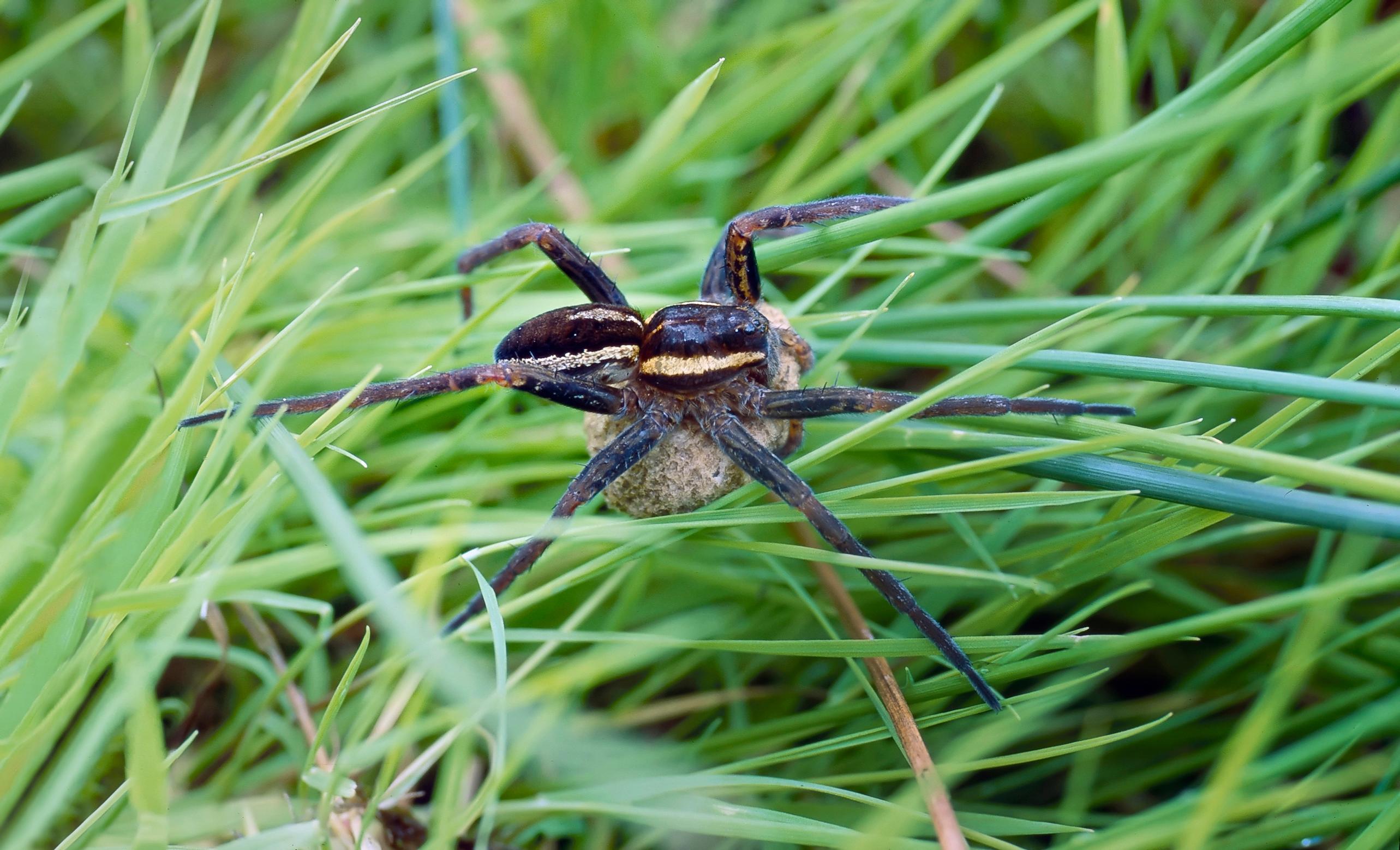 Yleensä vain yhteiskuntahyönteiset pitävät huolta poikasistaan, mutta maamme suurimpiin hämähäkkeihin kuuluva rantahämähäkkinaaras on poikkeus. Se kutoo poikasilleen pesän ja vartioi niitä uhkaavilta vihollisilta.