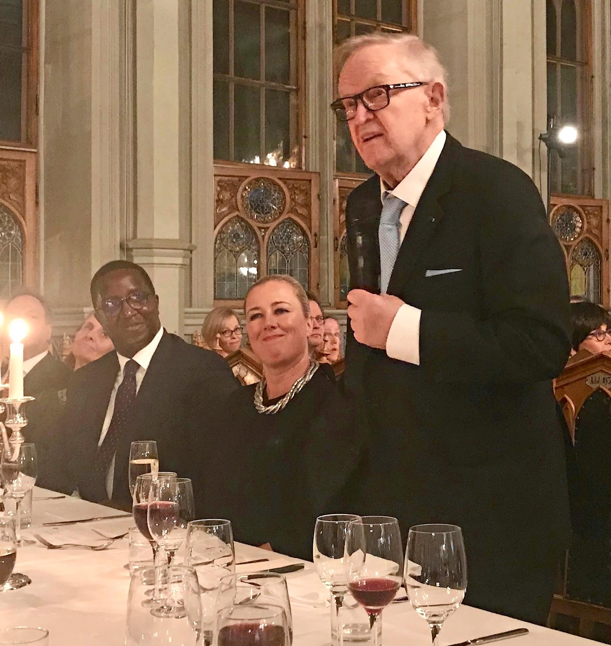Maailma pienoiskoossa oli kokoontunut vilkkaasti keskustelemaan ja nauramaan äärimmäisen vieraanvaraisten Ahtisaarten kotiin, jonka seiniä koristi taide edellisestä asemamaasta Tansaniasta, missä Martti oli aiemmin toiminut Suomen nuorimpana suurlähettiläänä.