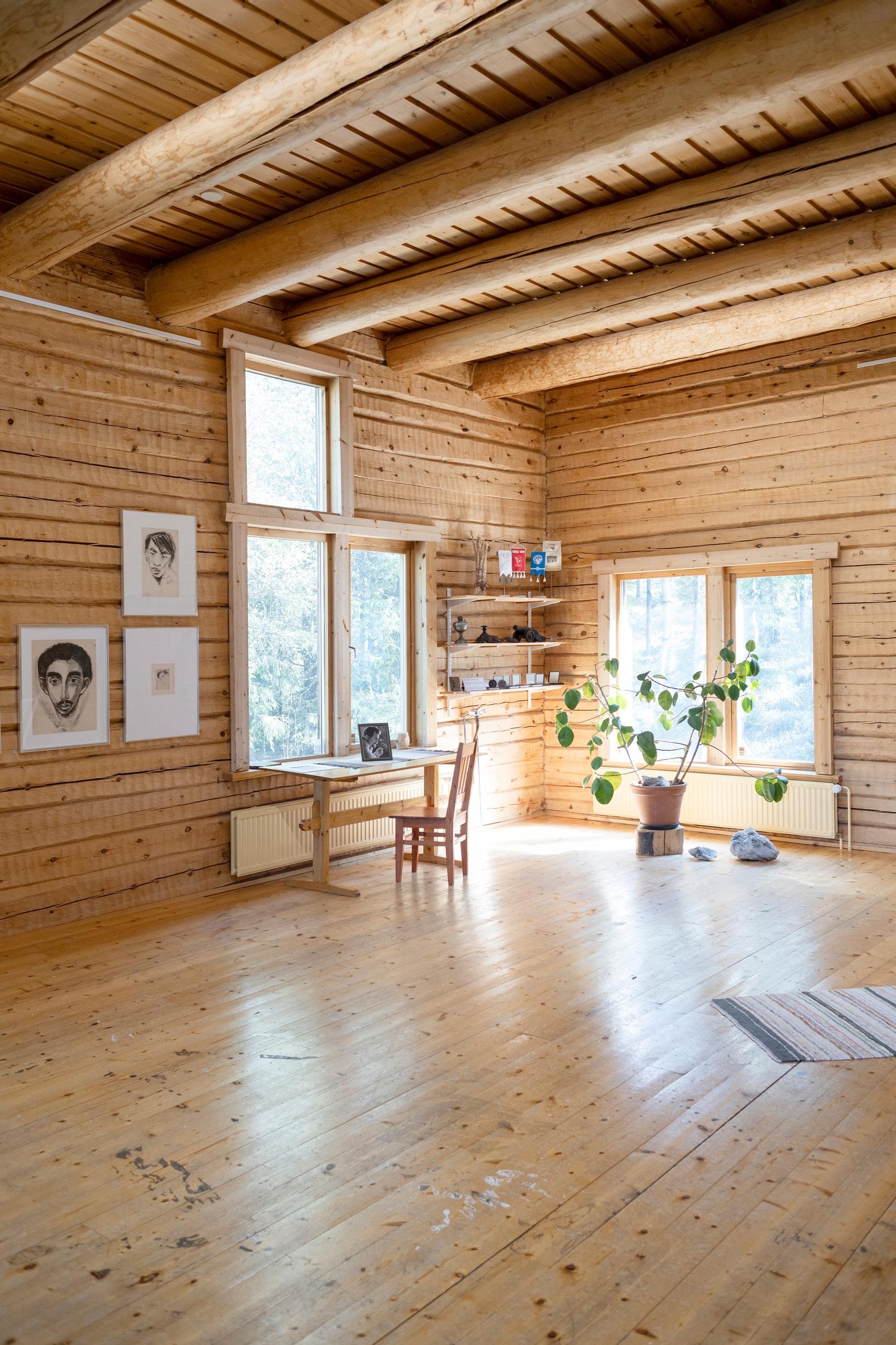 Reidar Särestöniemen työskentelytilat sijaitsivat ateljeen alakerrassa. Upeista ikkunoista tulvii sisään valoa, ja niistä ulos avautuu näkymä taiteilijaa inspiroineisiin Särestön maisemiin.