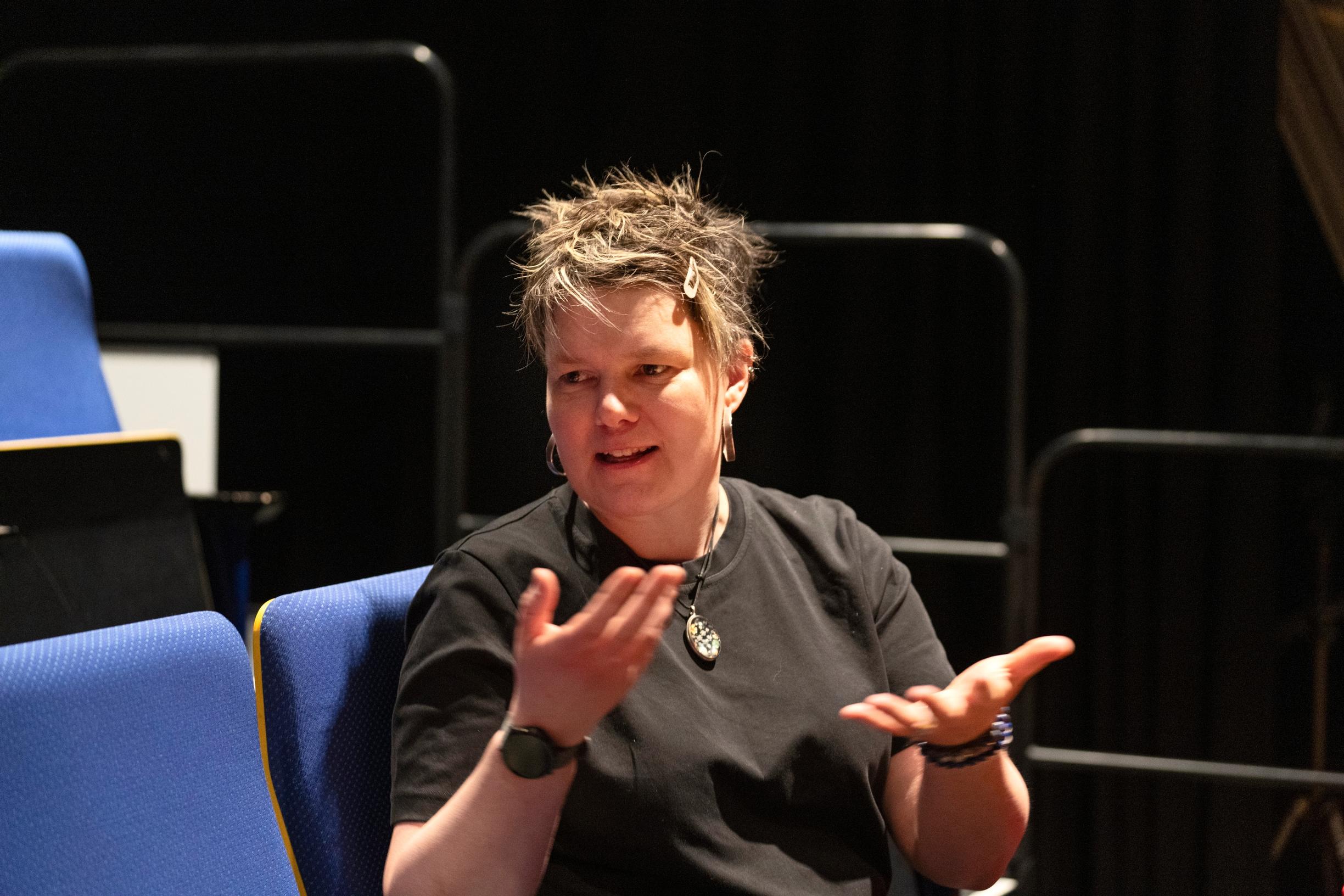 Haitari soi alakuloa. Näyttelijät päästelevät viimaisen tuulen ääniä. Lavalla pääväri on musta. Kaamos on laskeutunut Vesisaareen.