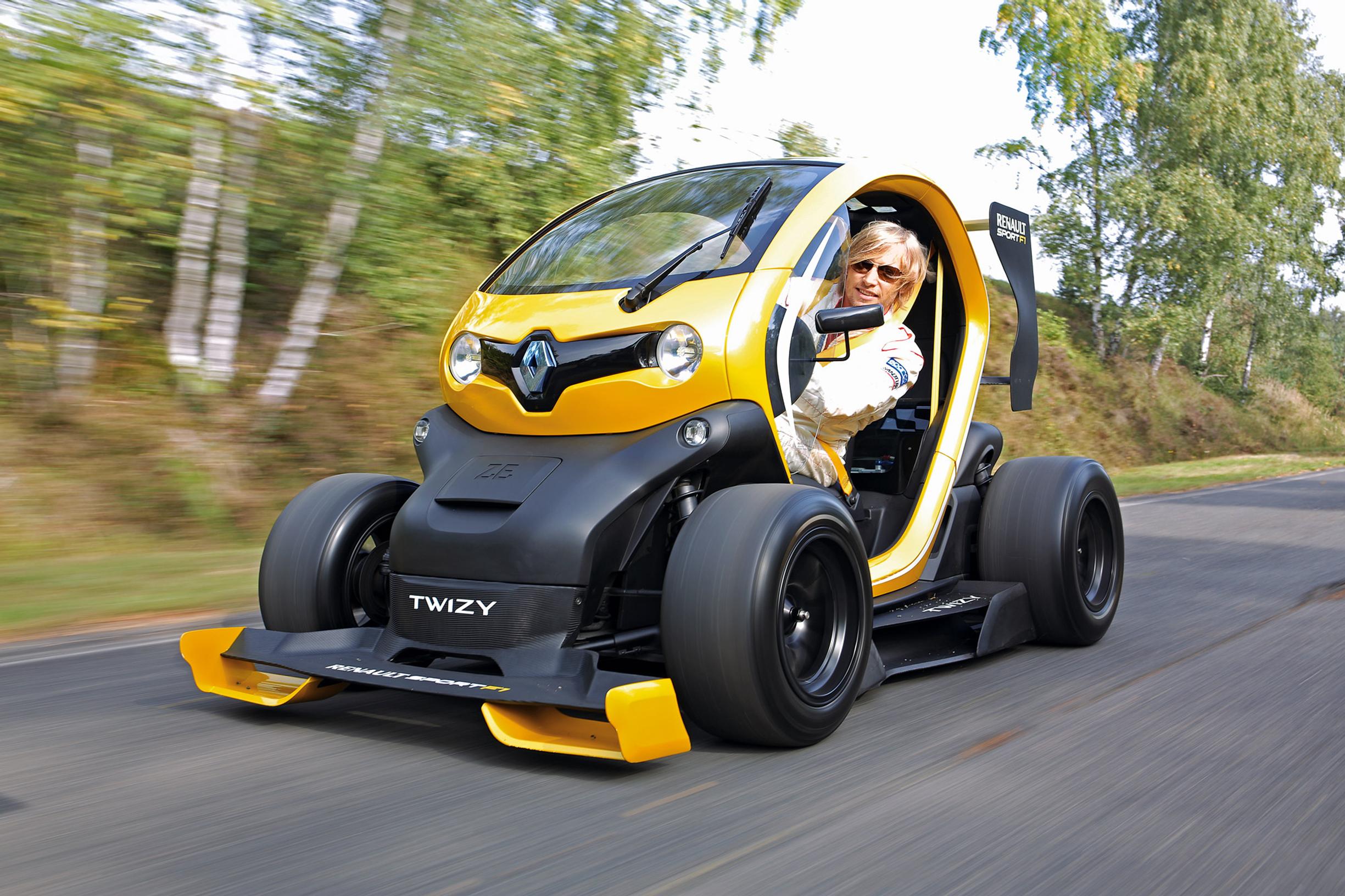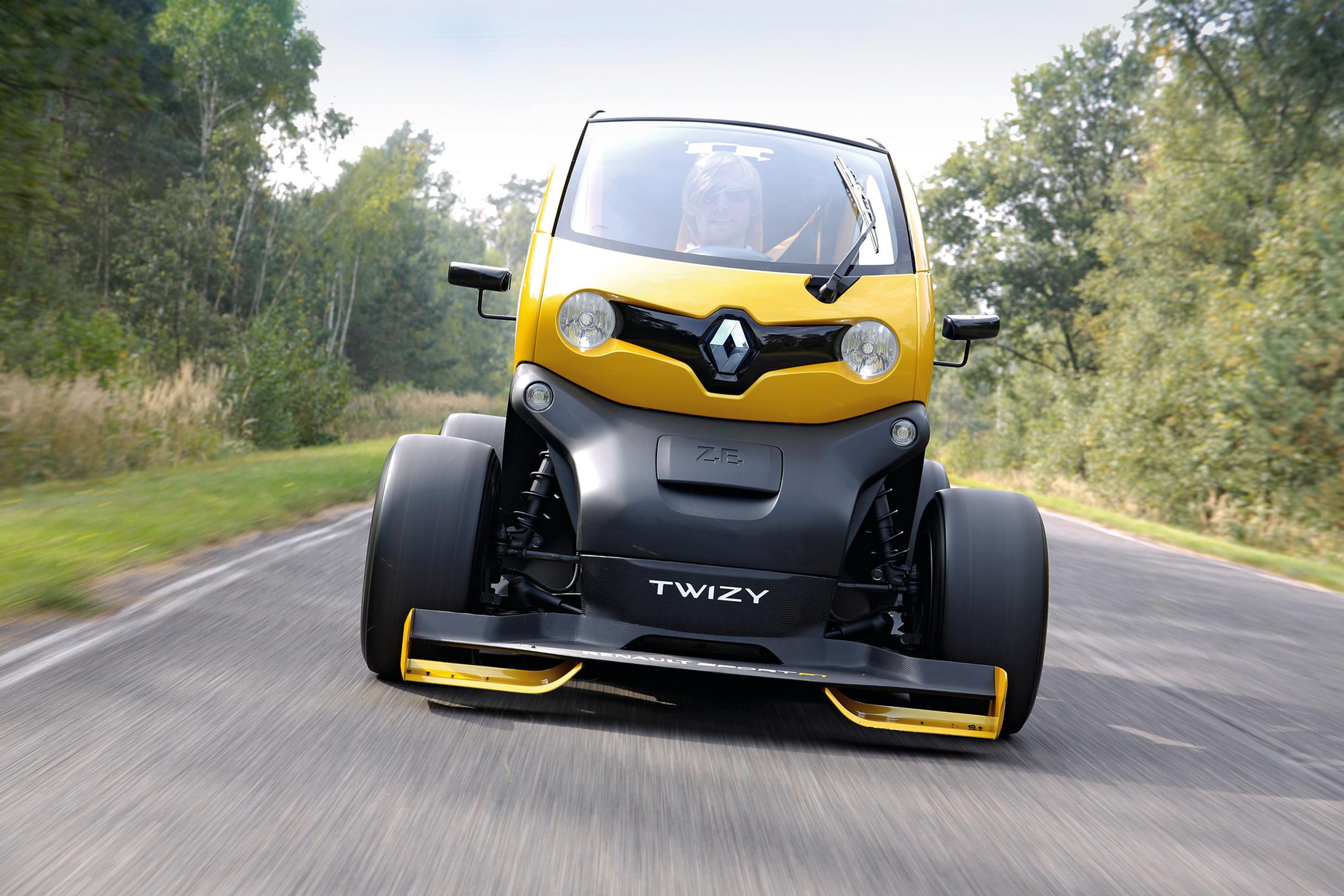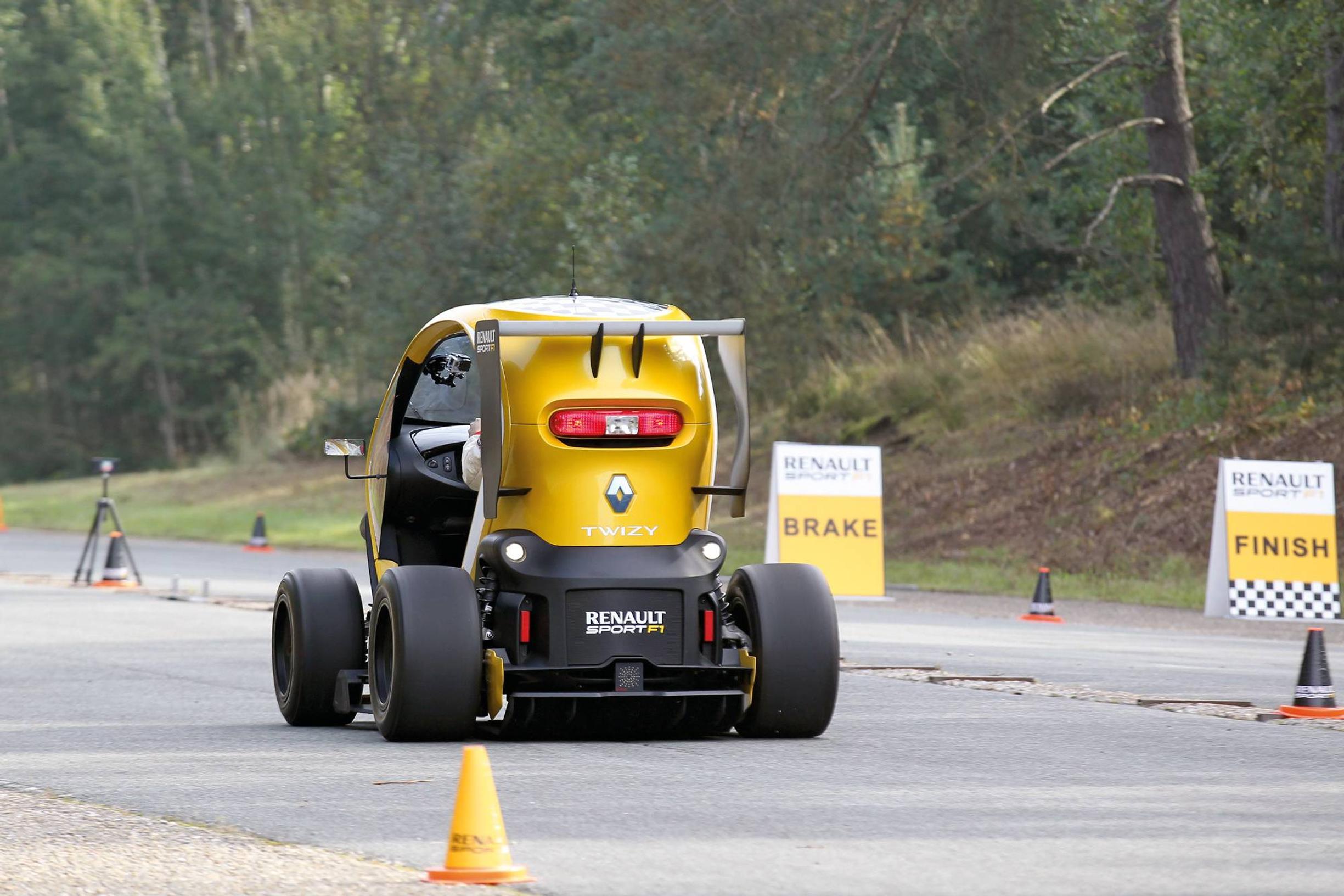 Kers-järjestelmän käyttäminen Twizyssä on niin hullu idea, että se tuntuu kiehtovalta. Ainakin Renault Sportin porukka ajatteli näin ja laittoi Twizyn peräpäähän todellakin F1:n koko jarruenergian talteenottojärjestelmän. Tuloksena oli todellinen monoposto, koska takapenkki piti uhrata lisätekniikan vuoksi. Autossa on myös lokasuojattomat pyörät leveiden slicksien muodossa sekä autourheilun kuninkuusluokan tyyliset etu- ja takaspoilerit. Näiden muutosten myötä Twizyyn saatiin todellakin kilpa-auton fiilistä. Se kulkee niin matalalla, että tuntuu kuin auto haluaisi imaista syksyn ensimmäiset lehdet pois asfaltilta.