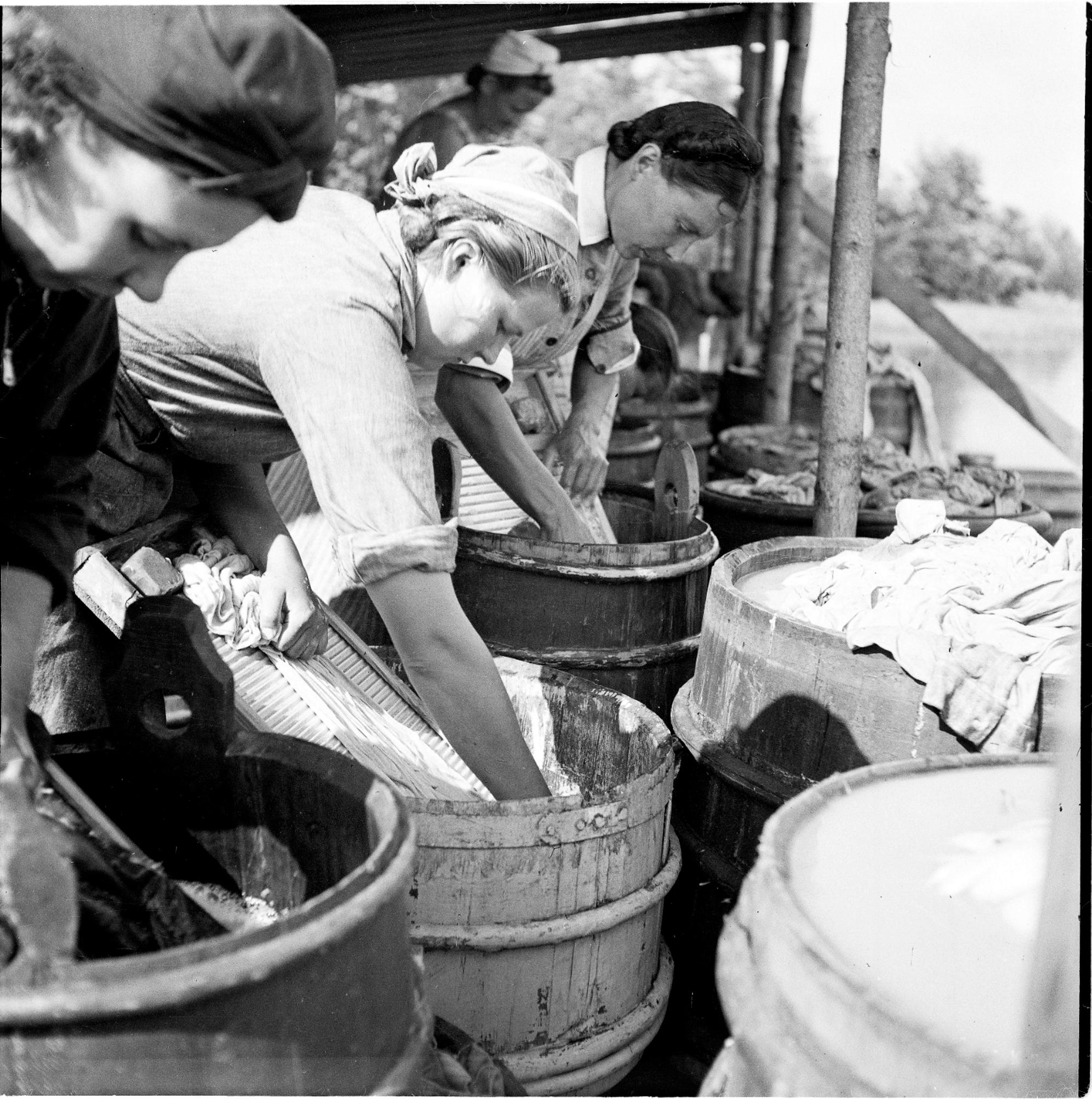 Lottatytöt auttoivat kotirintaman kasvitarha- ja pellavamailla, siivouksessa, pyykinpesussa ja monissa muissa lottien töissä. He osallistuivat talkoisiin jopa sotilaspoikia innokkaammin.