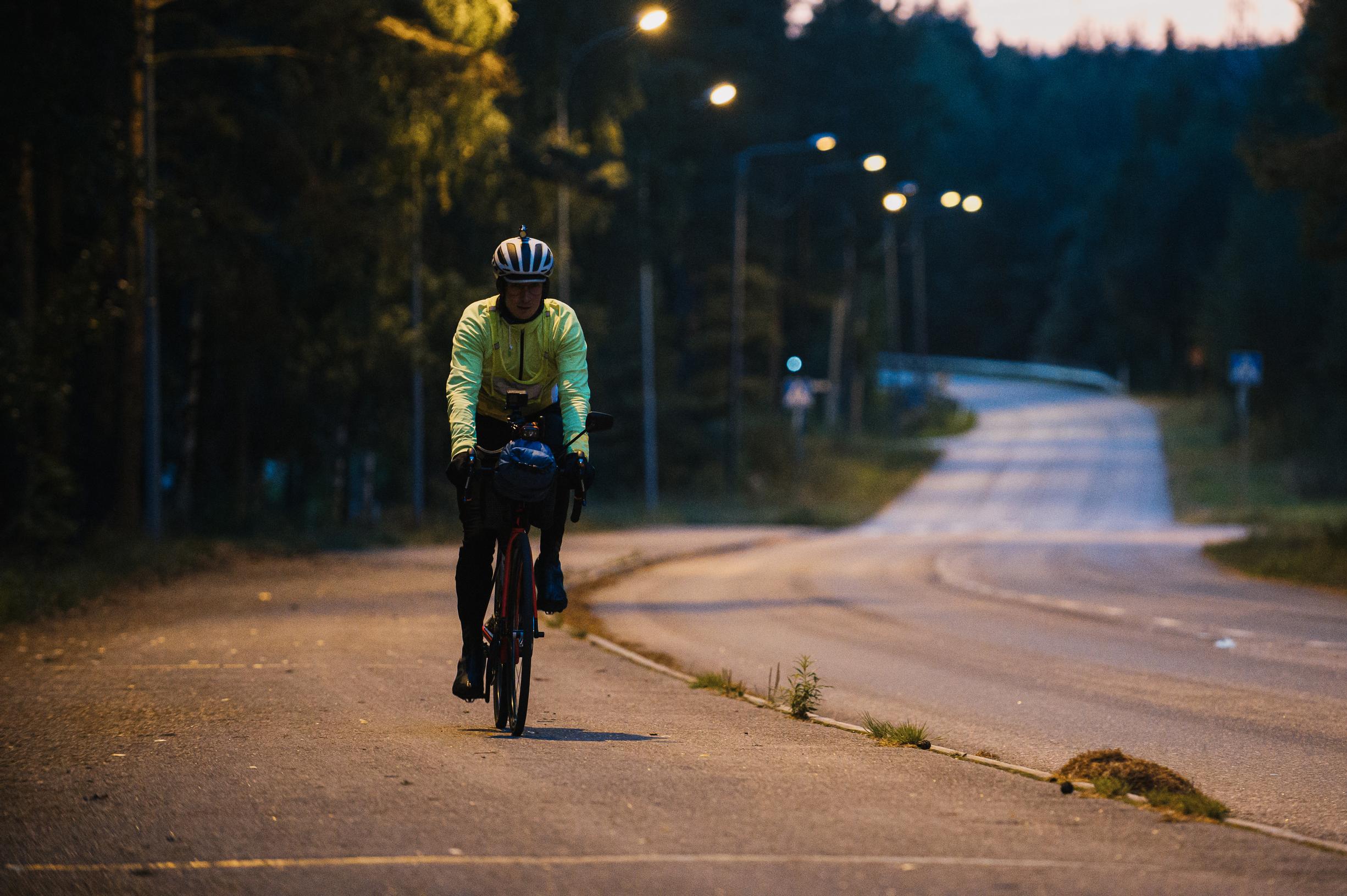 – Eilen kun lähdin yöllä Kittilästä, taivas oli auennut kokonaan. Mutta oli lämmintä ja myötätuuli. Kuuntelin podcasteja ja ajelin rauhassa. Syöminen vain on sateessa hankalaa. Normaalisti olisin syönyt evästä pitkin matkaa, nyt söin eväät vasta Levillä hotellissa.