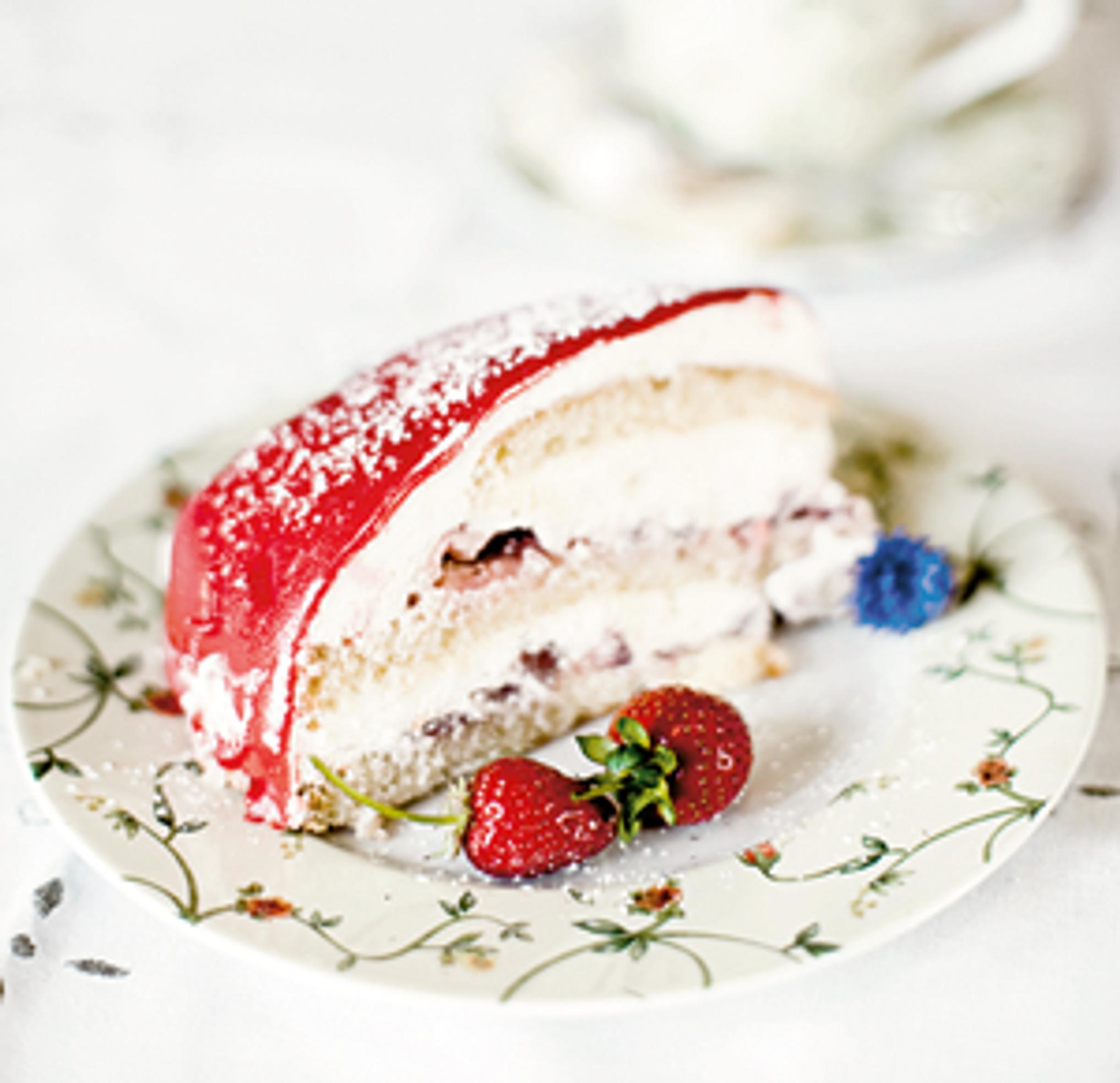 Sattmarkin prinsessakakku sisältää tuoreita mansikoita, valkosuklaata ja kermavaahtoa.
