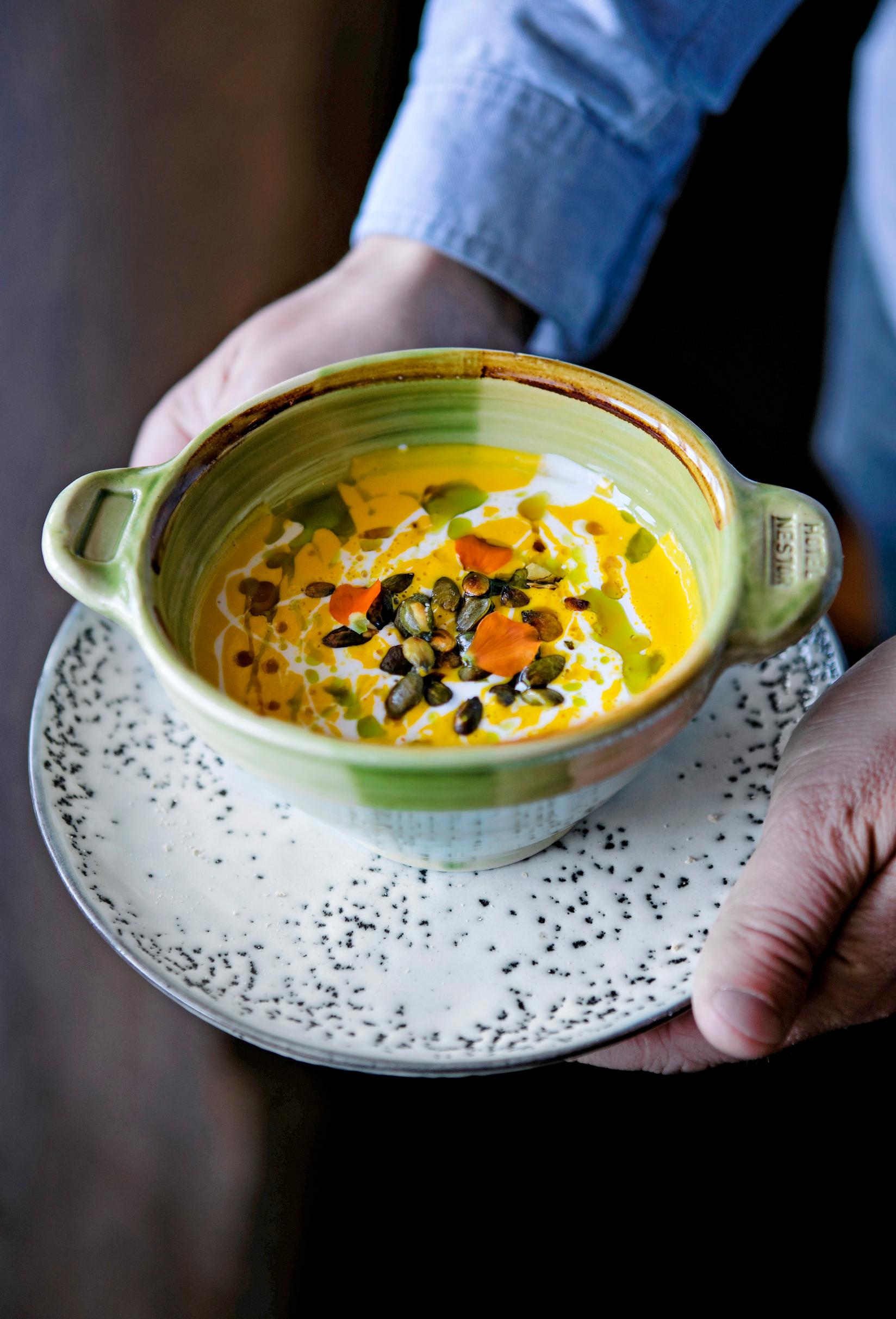 Hellgren on erityisen kiinnostunut ruokien asettelusta ja annosten estetiikasta. Sen huomaa. Näin kauniita lautasia ei Helsingin huippupaikoissakaan usein näe (6 ruokalajin menyy 74 euroa).
