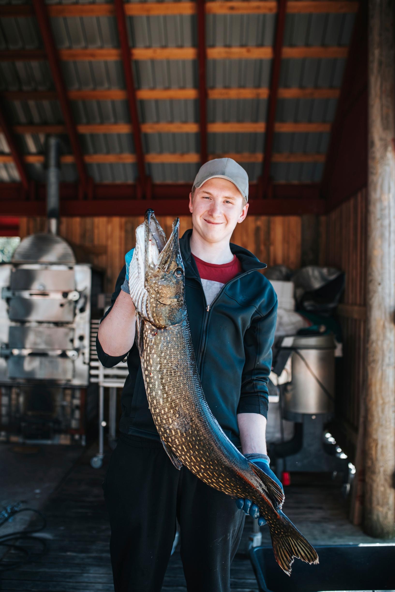 Antti ja Arttu Laine kantavat kalat kotisatamassa perkuutiloihin. Se yksi suuri hauki on punnittava. Mittari napsahtaa kahdeksaan kiloon, 200 grammaa suurempaan painoon kuin Antti Laine ennakoi. Seuraavana päivänä paikalliset ostavat hauesta tehtyjä herkkuja esimerkiksi Kalakontin omasta myyntiautosta tai matkailukeskus Sahanlahdesta. Päivän kalareissu on ohitse, mutta työt jatkuvat. Käsittelyä, kuljettamista, koneiden hoitoa, seuraavan päivän suunnittelua...