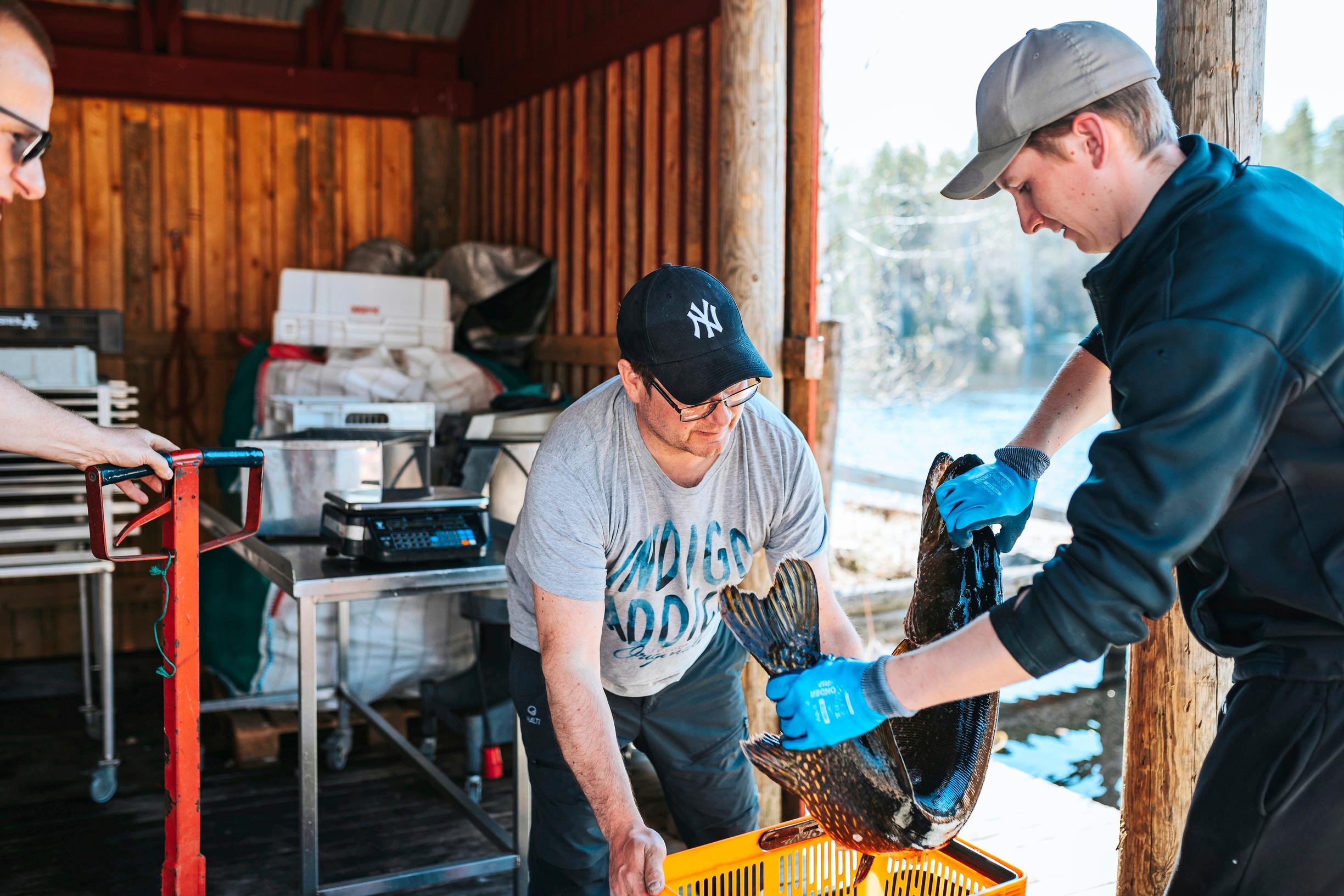 Tämän päivän kalat Antti ja Arttu Laine aikovat fileoida itse. Perheenäiti Tanja Raivio jalostaa ne Puumalan keskustassa olevissa toimitiloissa erilaisiksi valmiiksi tuotteiksi, kuljettaa jälleenmyyjille ja myy itse yrityksen omassa myyntiautossa satamassa.
