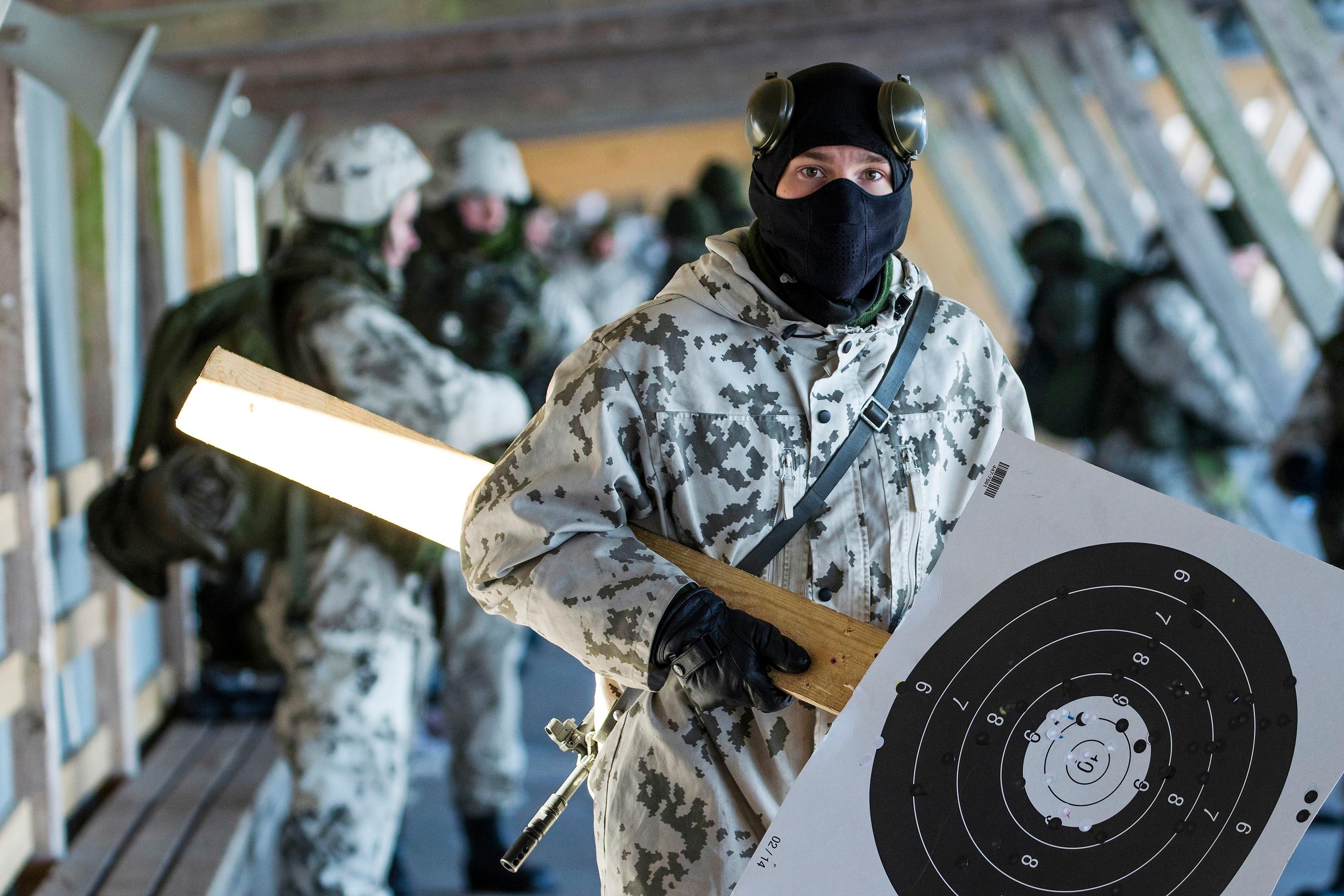 Raasin harjoitusalueelle on vajaan puolen tunnin ajomatka Säkylän varuskunnasta. Luutnantti Valtteri Laine on juuri lopettelemassa ampumaradalla jääkärien harjoitusammuntoja.