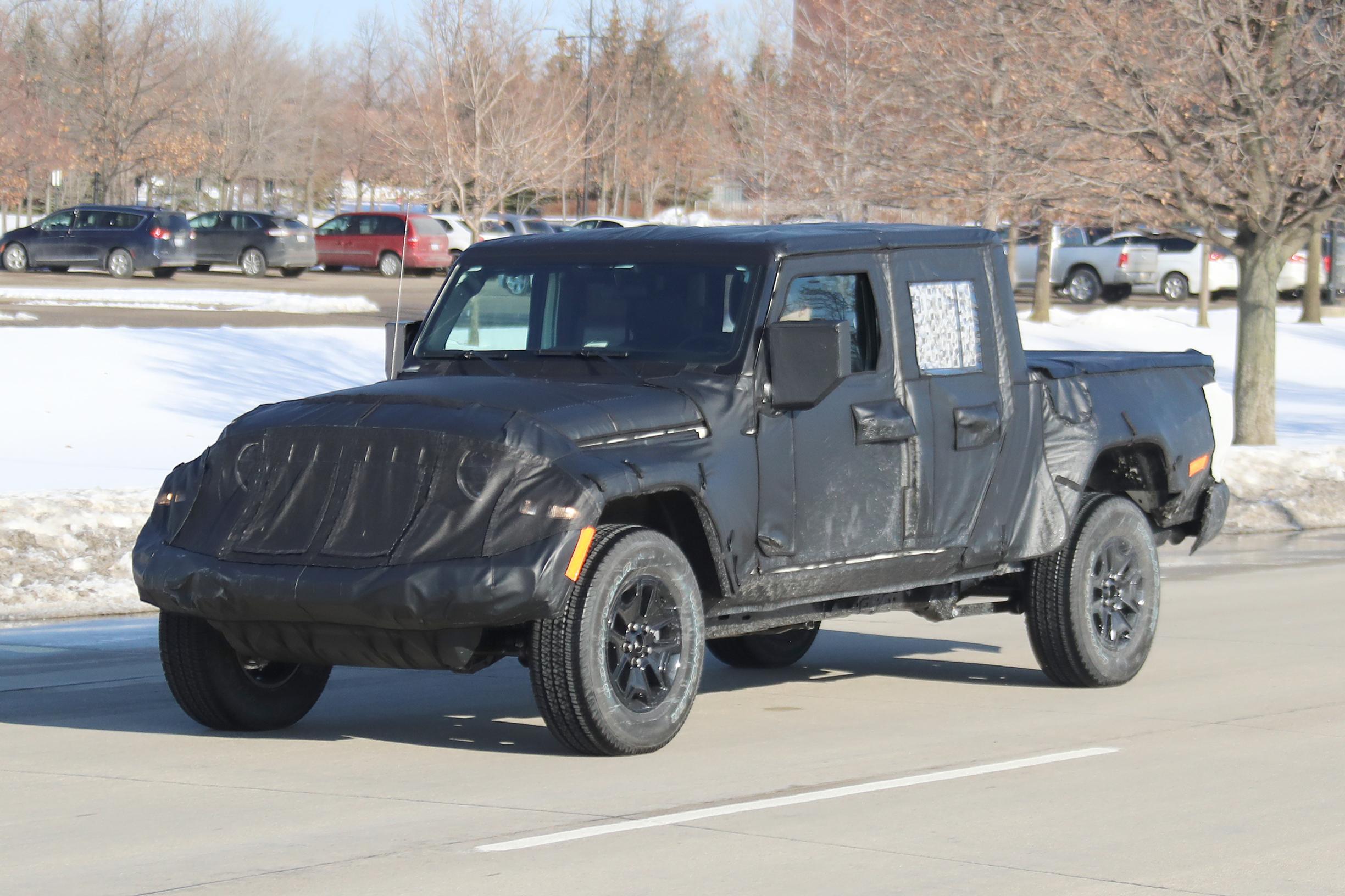 Jeepin Scrambler pick upin paluusta on huhuttu pitkään. Nyt näemme näistä kuvista, millainen siitä on tulossa. Oletamme sen perustuvan pitkän akselivälin Wrangler Unlimitedin alustalle, auton keula onkin kovin samannäköinen. Takapää on enemmän perinteistä Jeepiä.