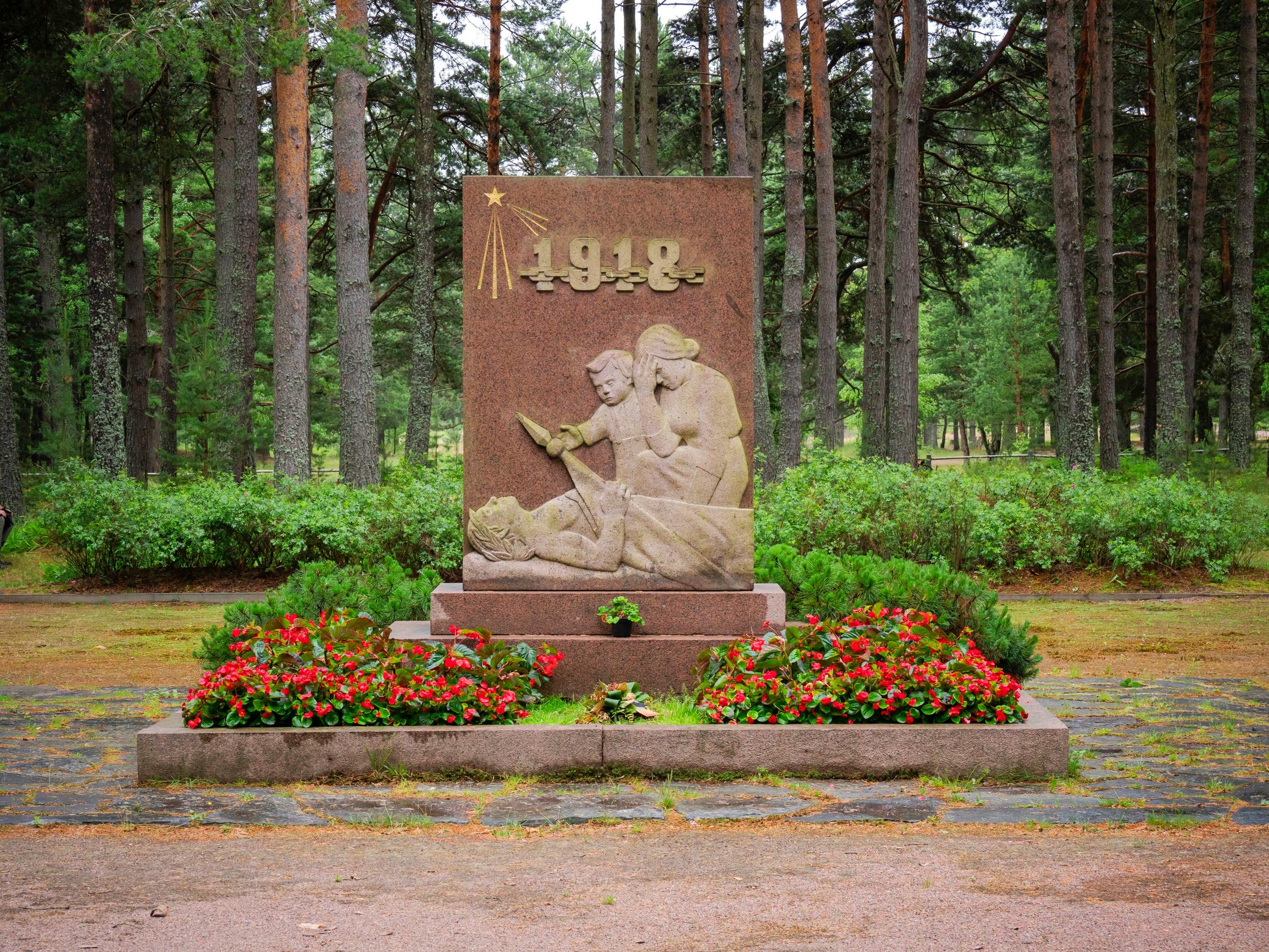 Luokkasodassa kansanvallan puolesta taistelleiden valkoisen voittajan koston uhreiksi joutuneiden teloitettujen ja nälkään näännytettyjen muistoksi pystytti Entiset punakaartilaiset ry toisten myötämielisten työläisten avulla tämän patsaan vuonna 1949."