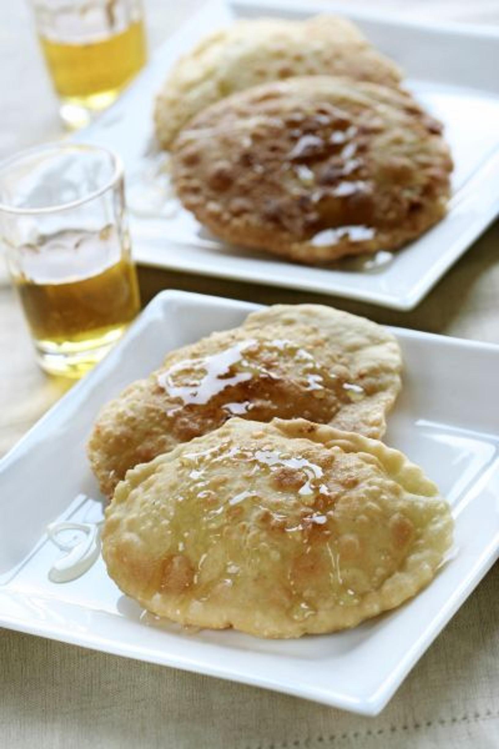 Hunajalla hunnutetut seadas-leivonnaiset kätkevät sisäänsä pecorino-juustoa.