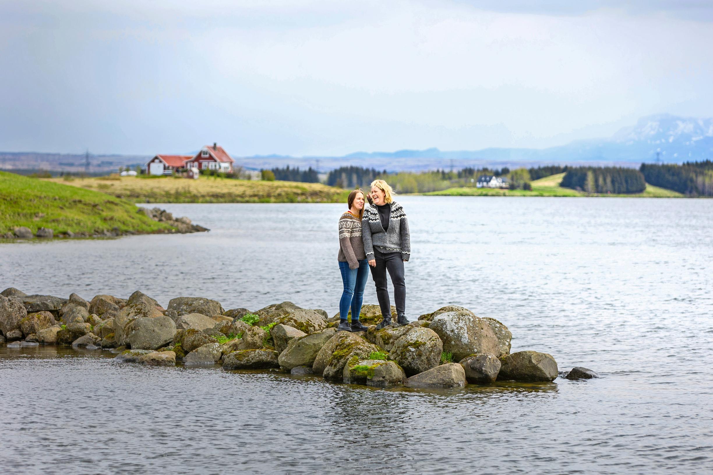 Lähdemme kahvien jälkeen kävelylle järven rantaan. Bláfjöllin ja Hengillin tulivuoret siintävät horisontissa. 15-vuotias koira jolkottelee edellämme. Välillä väistelemme vastaan tulevia islanninhevosratsukkoja.