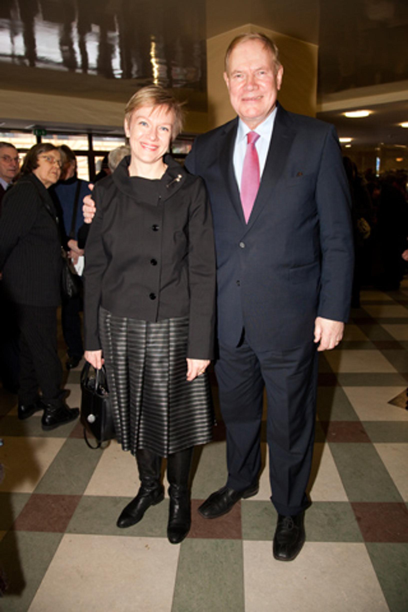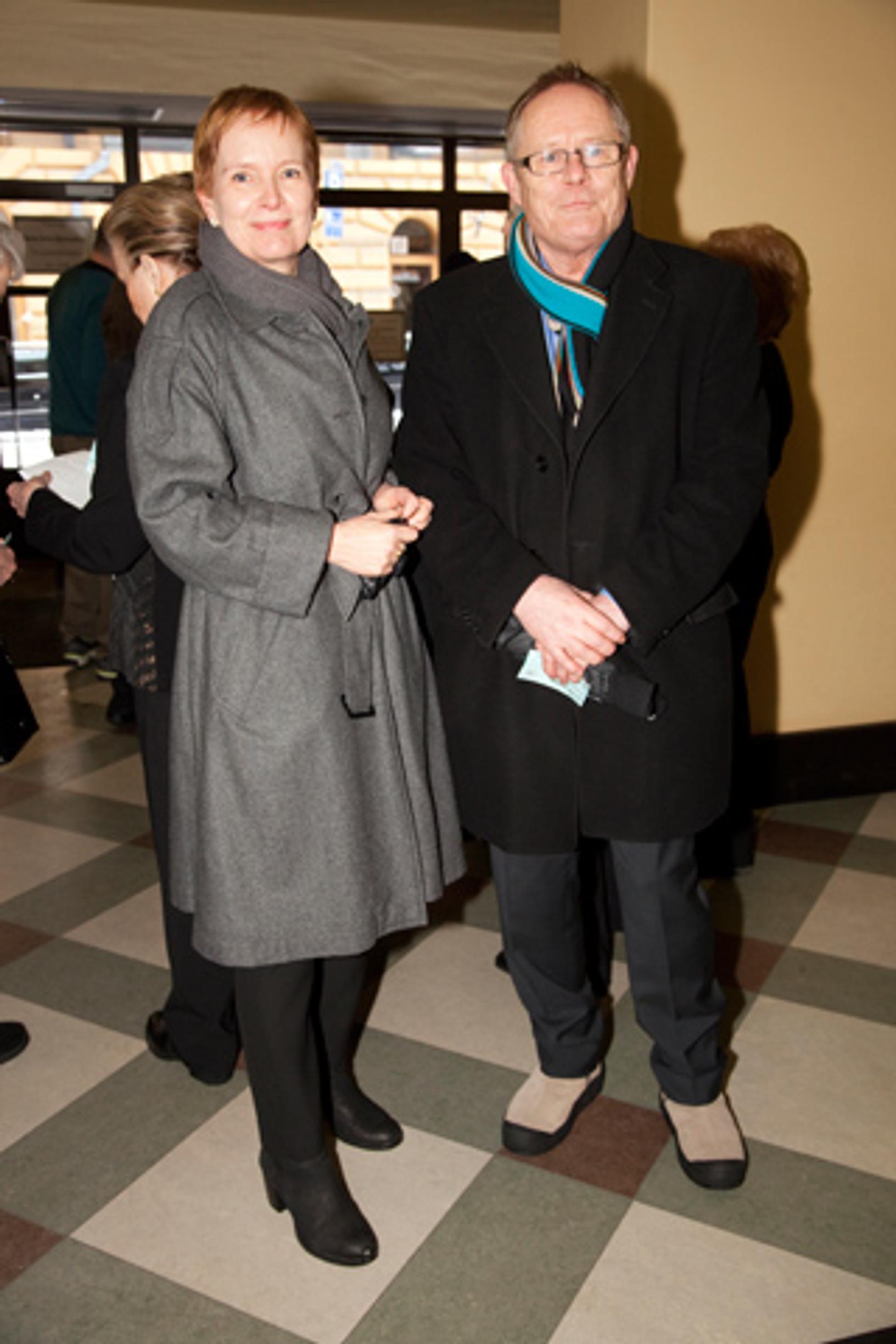 – Olen tehnyt Seelalle lavastuksia, kuvanveistäjä Martti Aiha kertoi. Vierellä kuvataiteilija Nina Roos.