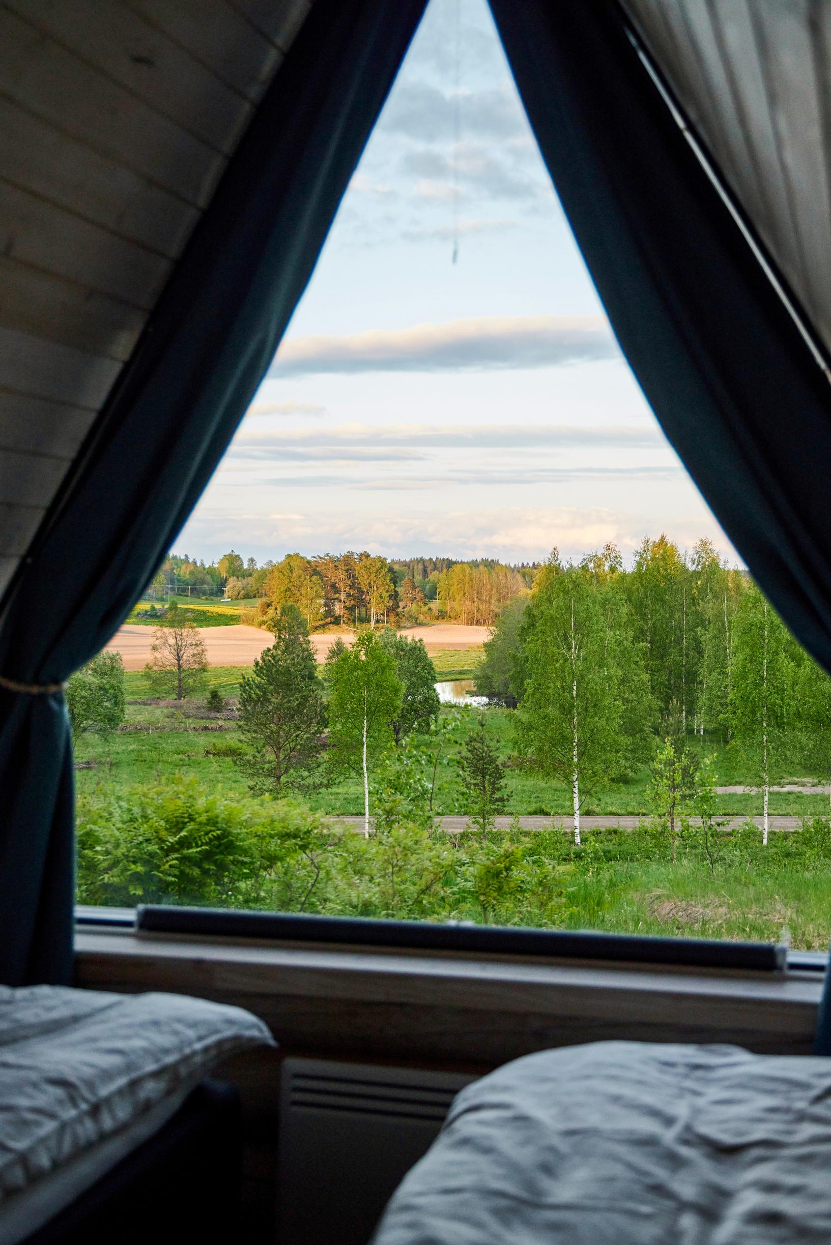 Virolahden naapurikunnassa Miehikkälässä voi yöpyä Hauhian Myllyn tiluksille rakennetussa maisema-aitassa.