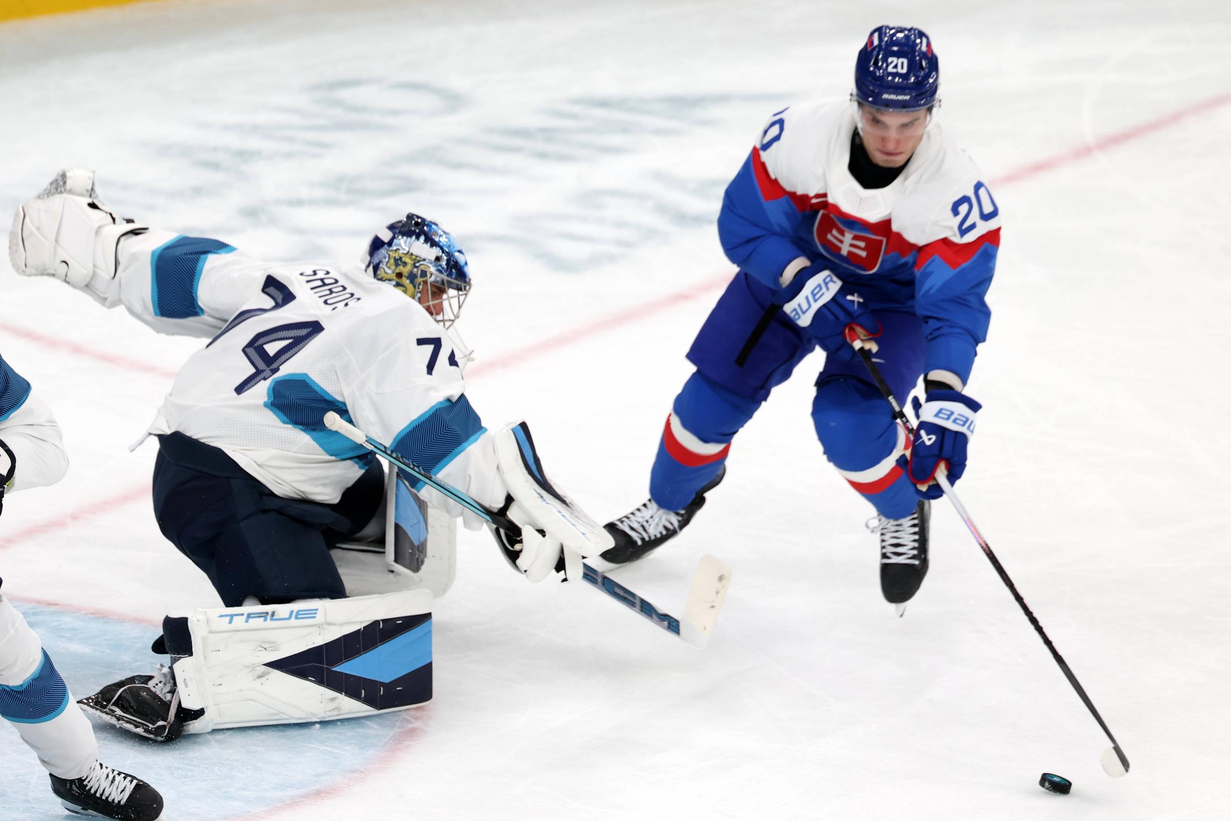 Slovakian 1–0-avausmaalissa Mikko Lehtonen töpeksi syötön pelin puolen laitaan suoraan maalintekijä Juraj Slafkovskylle. Roope Hintz varasti hieman liikaa matkaa hyökkäyssuuntaan eikä Henri Jokiharju havainnut siirtyä puolustamaan tilanteessa yksi-vastaan-kaksi. Juuse Saros oli virtuoosimaisen Slafkovskyn edessä voimaton.