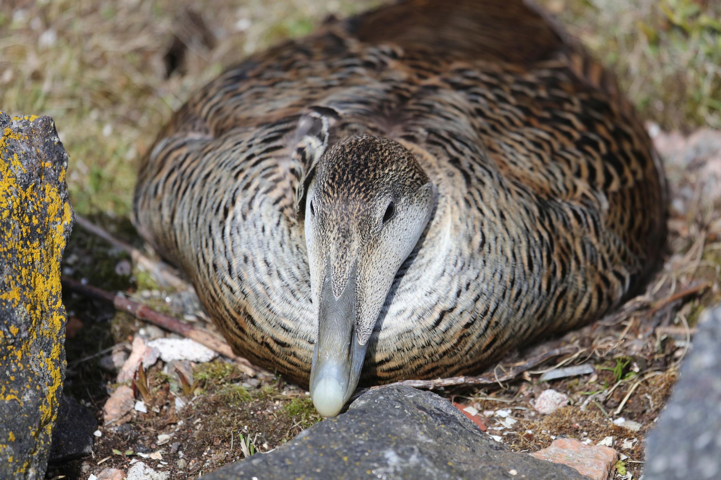 Kun astun jalallani kallioiselle saarelle, käy heti selväksi, miten arvokkaalla luontoalueella ollaan: olen vähällä kävellä hautovan haahkan päältä!