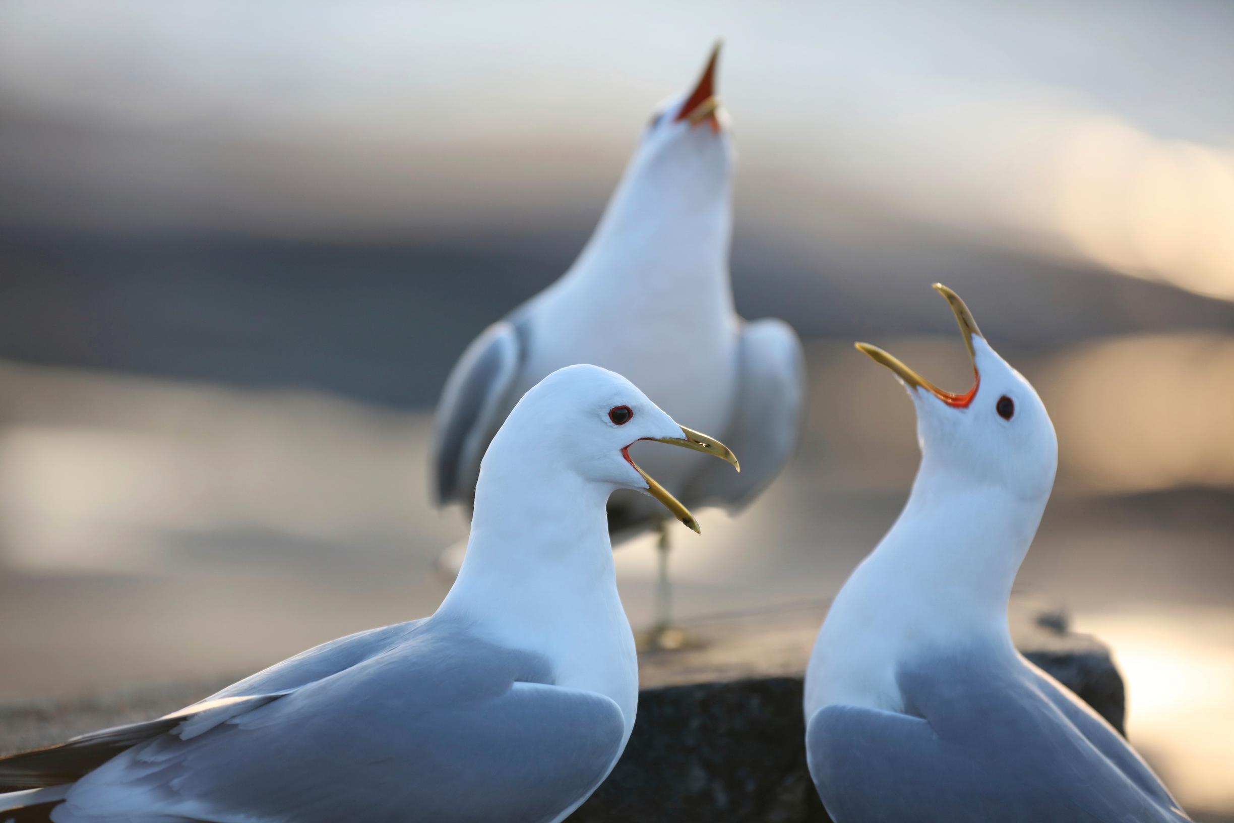 Horisontissa erottuu tavan takaa suuria lintuparvia: valkoposkihanhia, haahkoja, tukkasotkia, telkkiä. Pieni luoto on valkoisenaan siroja lapintiiroja.