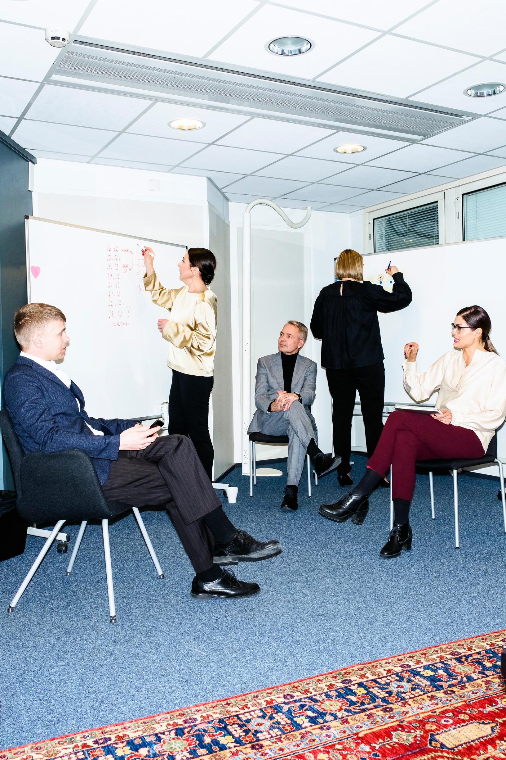Ulkomaailmaan vaaleista ei ole välittynyt juuri mitään, vaikka toimistolla ne ovat silti olemassa joka hetki, niin kuin ovat olleet jo kuukausien ajan. Riikka Kämppi on työskennellyt kampanjan eteen kesäkuun alusta. Marraskuun lopulla on palkattu jo edellisvaaleissa autokuskina toiminut Robert ”Roope” White Pekan henkilökohtaiseksi avustajaksi, eri järjestöille viestintää tehnyt Mari Pasula kampanjakoordinaattoriksi ja nyt joulukuun alusta tiimin ruotsinkieliseksi lenkiksi Maria Swanljung, joka veti kuusi vuotta sitten RKP:n Eva Biaudet’n kampanjaa.