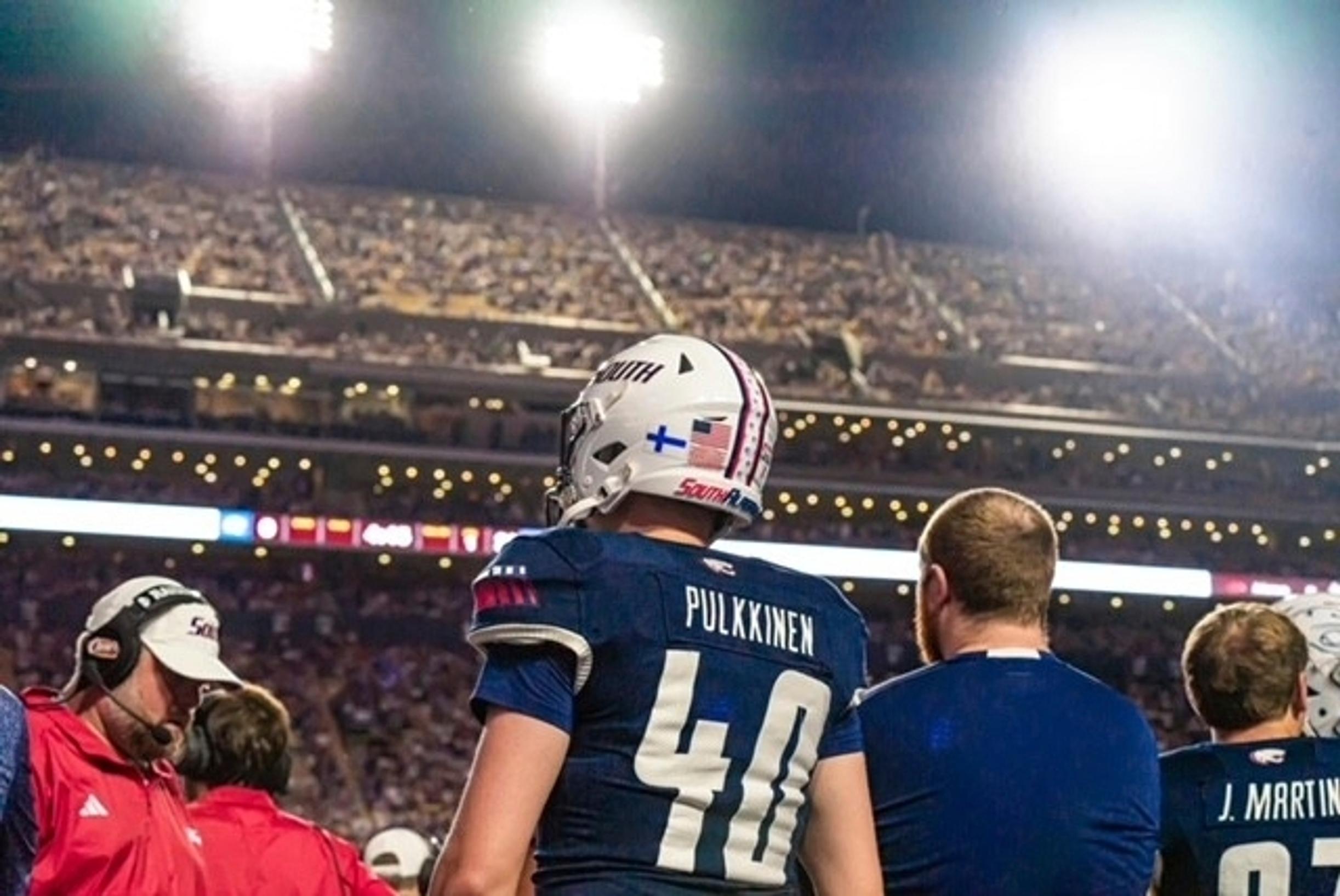 South Alabaman kotiotteluissa käy säännöllisesti 17 000–20 000 katsojaa. Toissa kaudella Pulkkinen pääsi pelaamaan vierasottelussa Louisianan osavaltion yliopistoa vastaan. LSU Tigers on yksi maan parhaimmista jenkkifutiskouluista. Yleisöä oli ottelussa peräti 102 143. Harvat suomalaiset ovat koskaan päässeet urheilemaan yli 100 000 katsojan edessä.