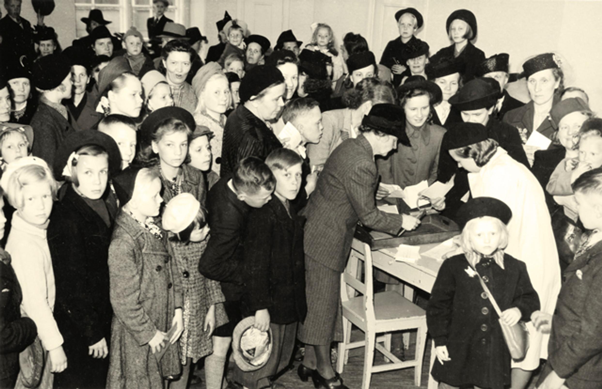 Lapsille jaettiin elintarvikekortteja toukokuussa 1942. Korteilla säännösteltiin muun muassa voita. Kuva: F.E Fremlingin kokoelma.