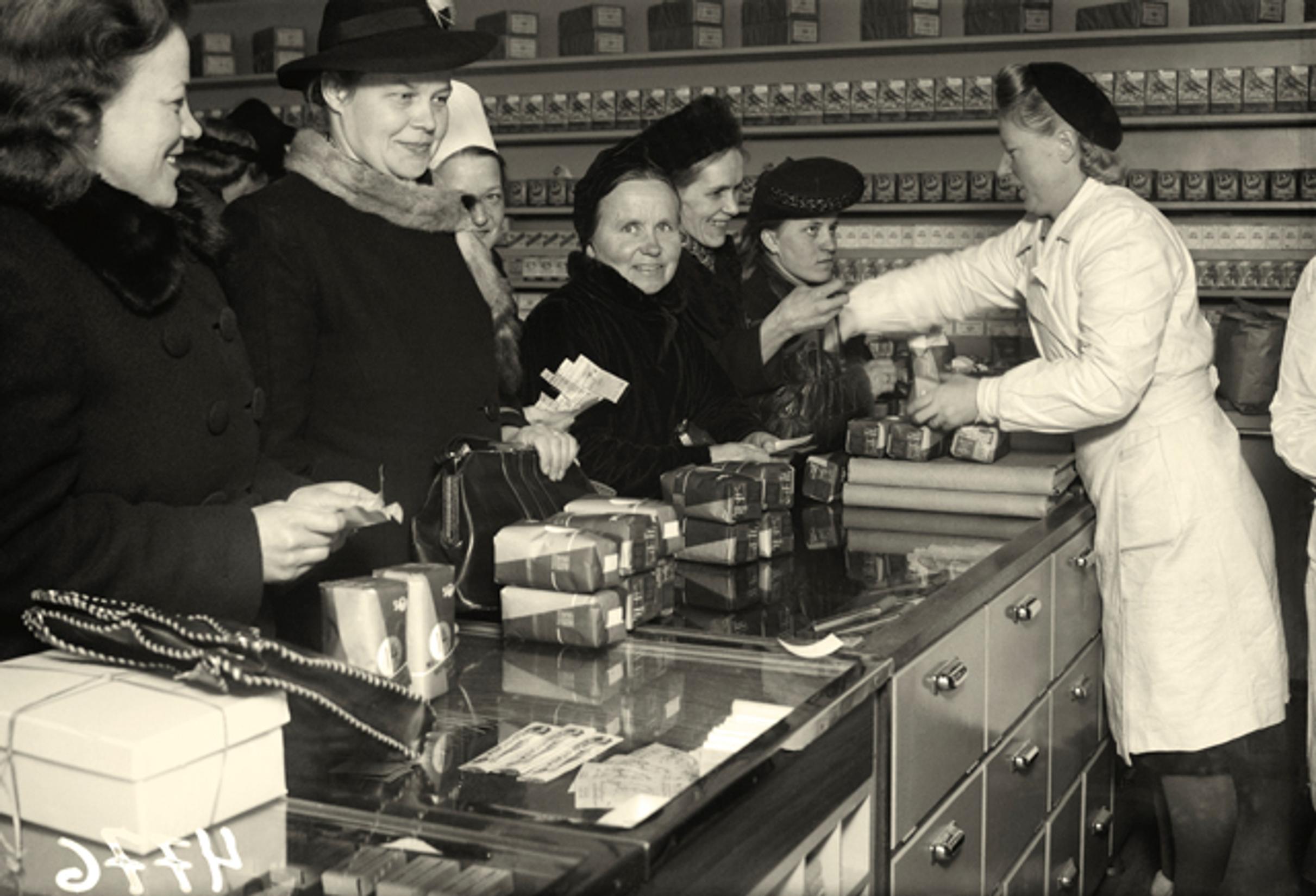Sota vei kahvinkin. Ouluun tuli ensimmäistä kertaa myyntin 1946 oikeaa kahvia, ei enää korviketta. Kuva: Aaron albumikuvat.