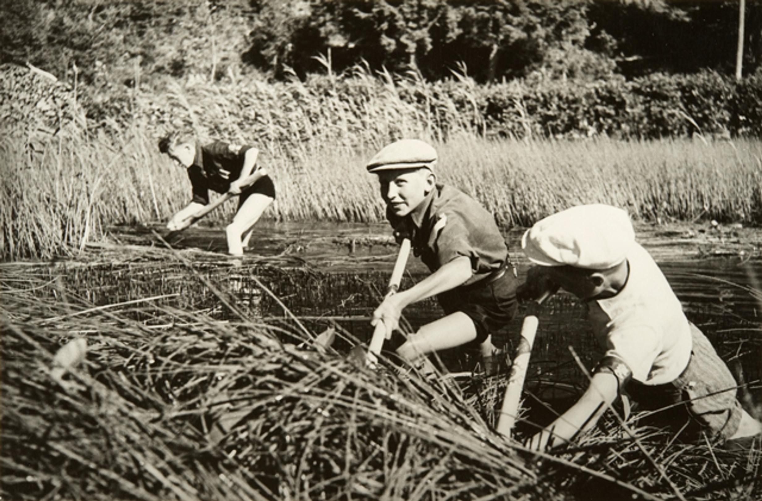 Pojat laitettiin leikkaamaan kaisloja eläinten rehuksi sodan jälkeisenä pula-aikana vuosina 1946–1949.