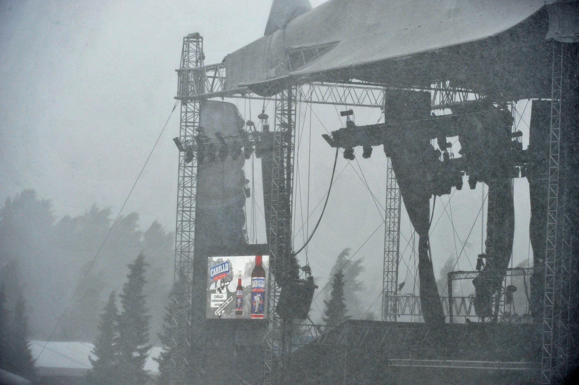 – Tuuli hajotti kaikkia rakenteita, joissa oli vähänkin jotain kangasta. Myyntiteltat nousivat lentoon ja osa hajosi. Osa nousi kokonaisena ilmaan. Päälava kerta kaikkiaan näytti siltä, että se olisi räjähtänyt.