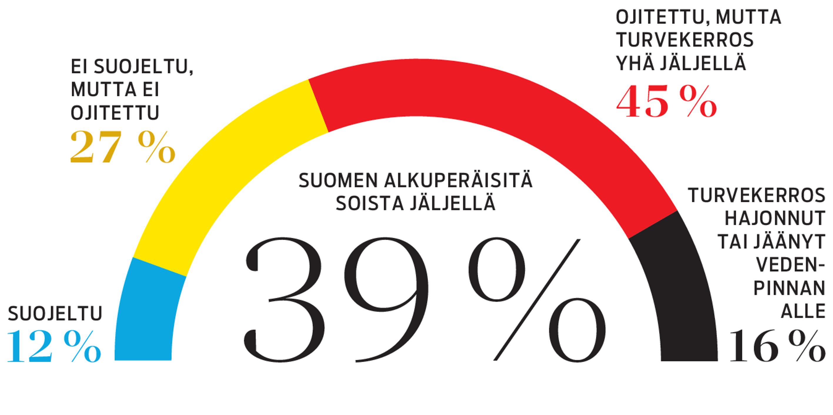 Tämä on asia, jota pohditaan nyt myös laajemmin EU:n ja kansallisen monimuotoisuusstrategian tavoitteiden saavuttamiseksi. En pysty sanomaan, mikä tason pitäisi ekologisesti olla. Mutta lähtökohdan tulee olla, että ensin pitää turvata kaikki jäljellä olevat suot maankäytön suunnittelulla ja ennallistamisella. Suoluonnon taantumista ei saisi enää jatkossa tapahtua. Tämä on se olennaisin seikka, johon täytyisi löytää ratkaisut. Rinnalla sitten pohditaan, mitä lähdetään palauttamaan. Molempia tarvitaan.