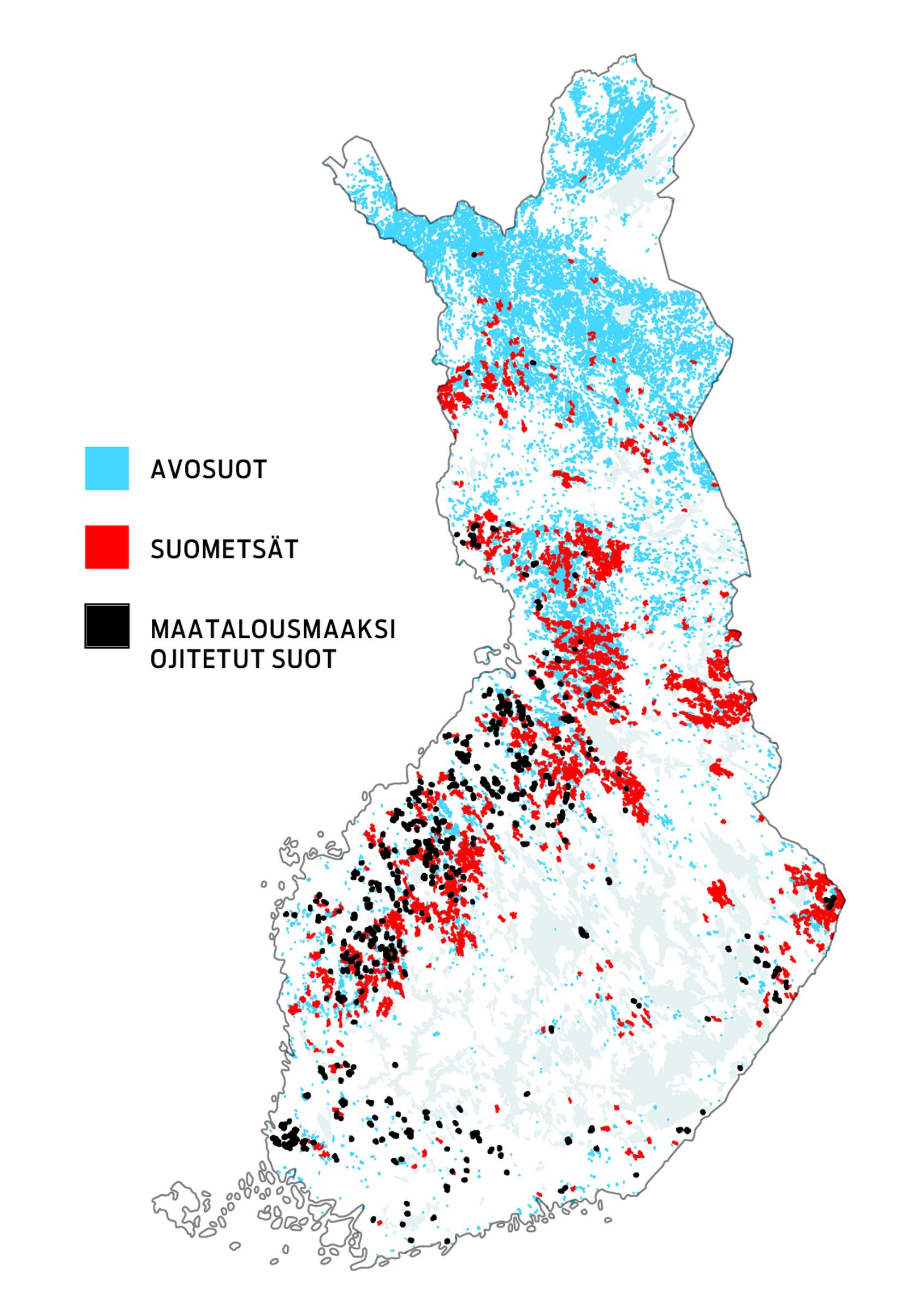 Suomen suot ovat pohjoisessa ja lännessä