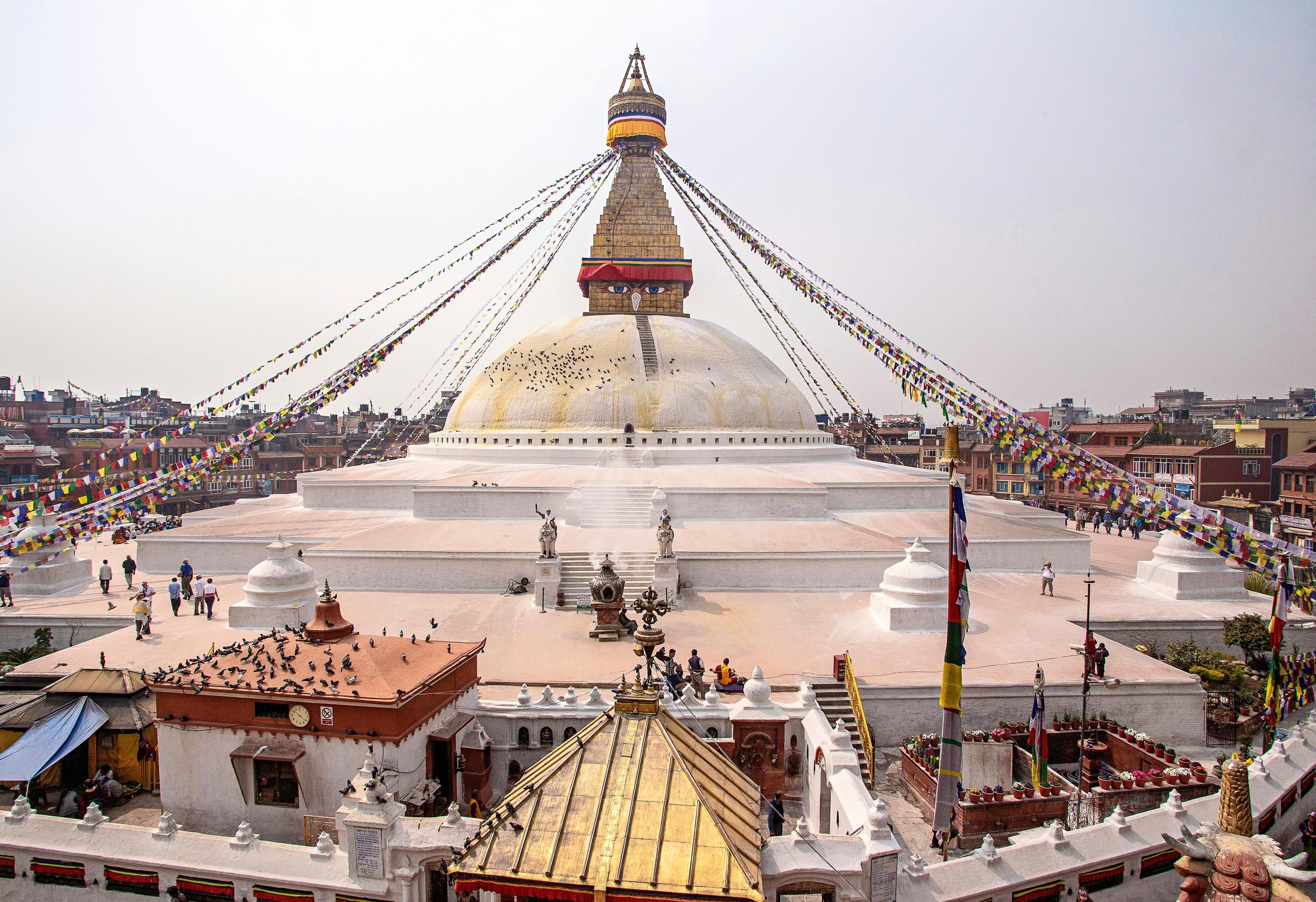 Kiehtova paikka on myös Boudhanath, valkoinen, 36 metriä korkea stupa eli temppelitorni. Sen huipulla Buddhan kaikkinäkevät silmät tarkkailevat ympäristöä. Stupa sijaitsee keskellä Kathmandun tiibetiläisiä kortteleita, ja sitä kiertää pyhiinvaeltajien virta. Omistautuneimmat heistä heittäytyvät joka kolmannella askeleella maahan rukoilemaan.
