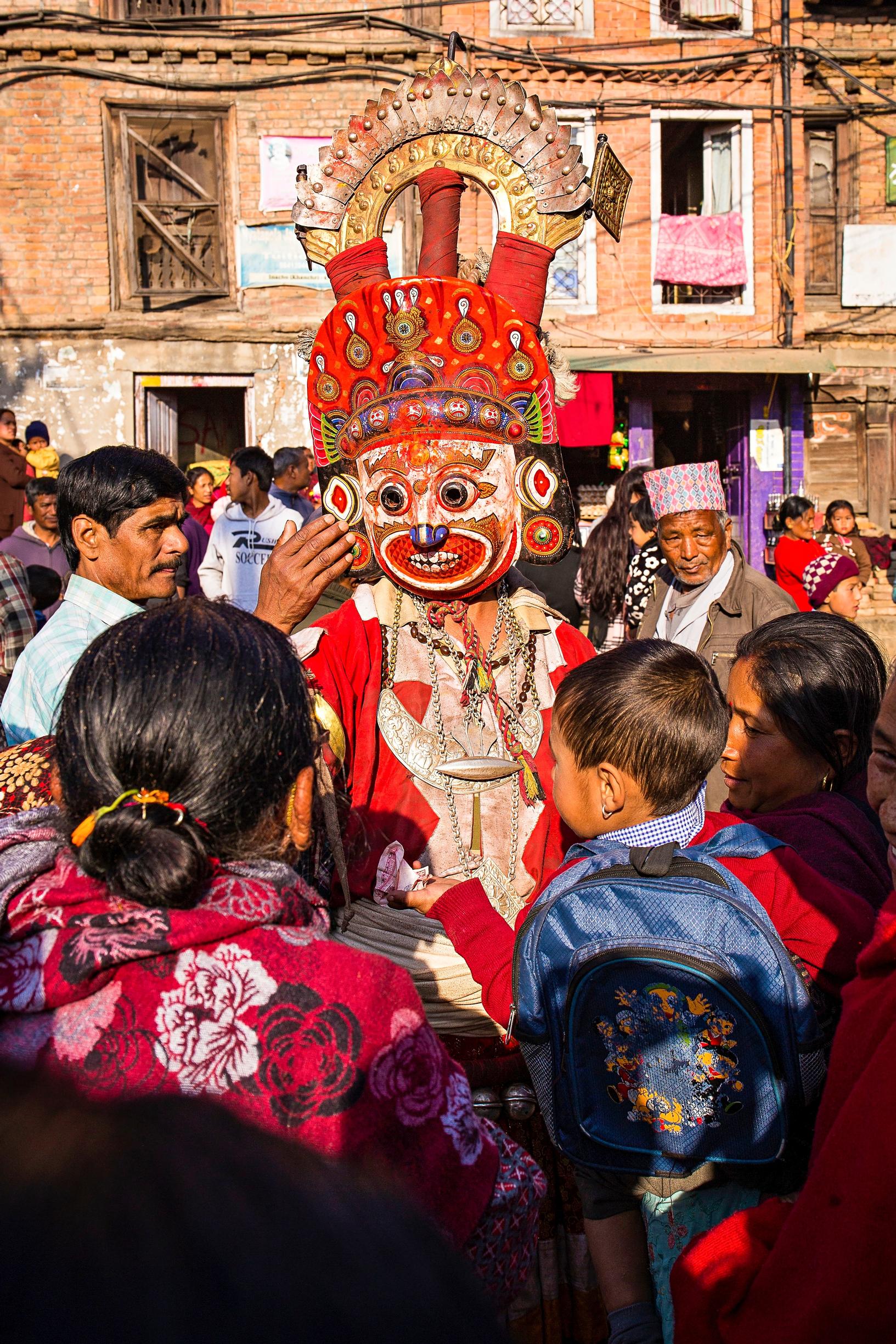 Kathmandunlaakson newari-kulttuuri onkin kuin jostain fantasiaeepoksesta. Kaupungissa asuu elävä jumalatar, ja eläimiä uhrataan verenhimoisille jumalille. Koska tahansa vastaan saattaa tulla naamioasuisten tanssijoiden ryhmä. Naamiot antavat näille eräänlaisille shamaaneille ihmevoimia.