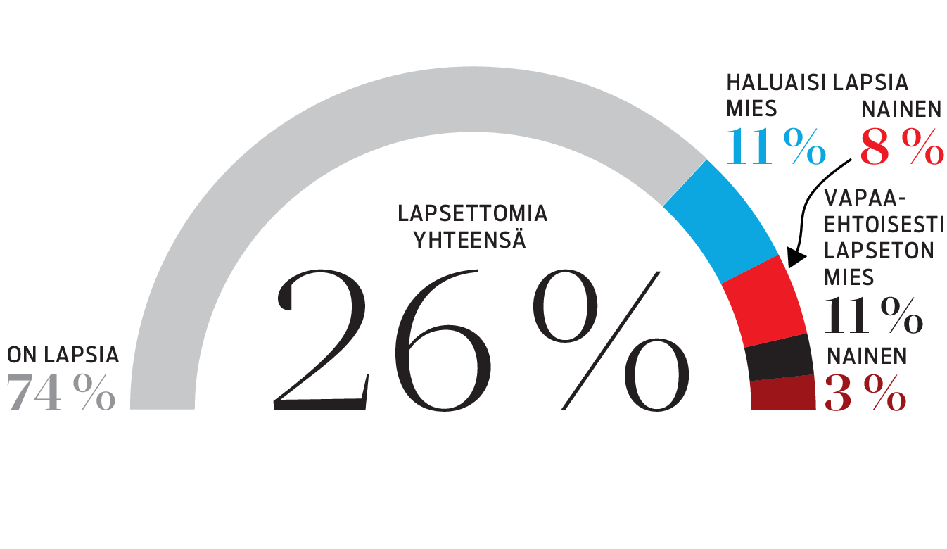 Kyse ei ole ainoastaan siitä, että naisen keskimääräinen lapsiluku jää monella pieneksi, vaan myös siitä, että moni ei saa lainkaan lapsia. Suomessa kokonaan lapsettomaksi jäävien osuus on maailman korkeimpia. Suurin osa viimeaikaisesta syntyvyyden laskusta liittyy siihen, että nimenomaan esikoisia on syntynyt vähemmän. Myös toisia, kolmansia ja myöhempiä lapsia on syntynyt vähemmän, mutta esikoisten kohdalla muutos on suurin. Jos ihmisten lapsitoiveet toteutuisivat, syntyvyys olisi mallillaan.