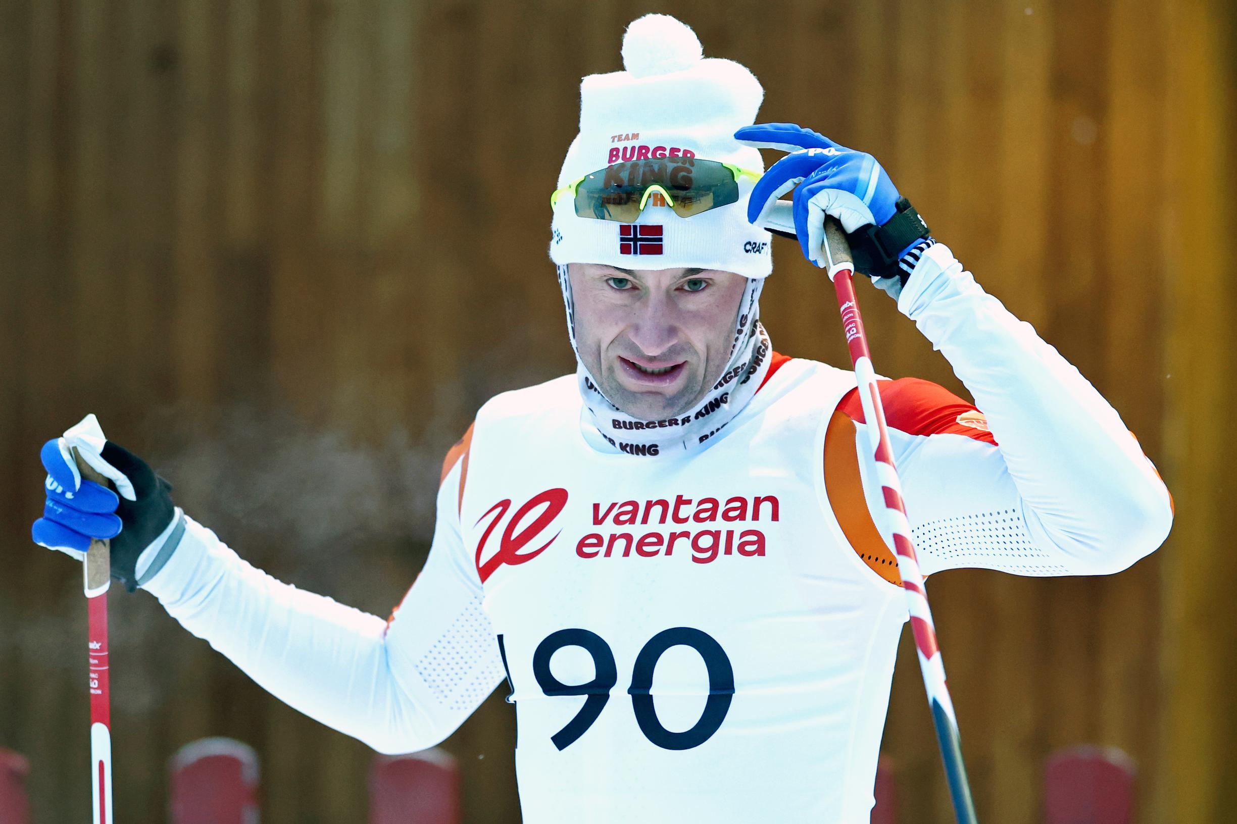 Aitio tavoitti Northugin Hakunilan maalialueella. Meritoitunut hiihtäjä aikoo kilpailla Vantaalla myös sunnuntaina, sillä kausi ei ole mennyt odotusten mukaisesti.