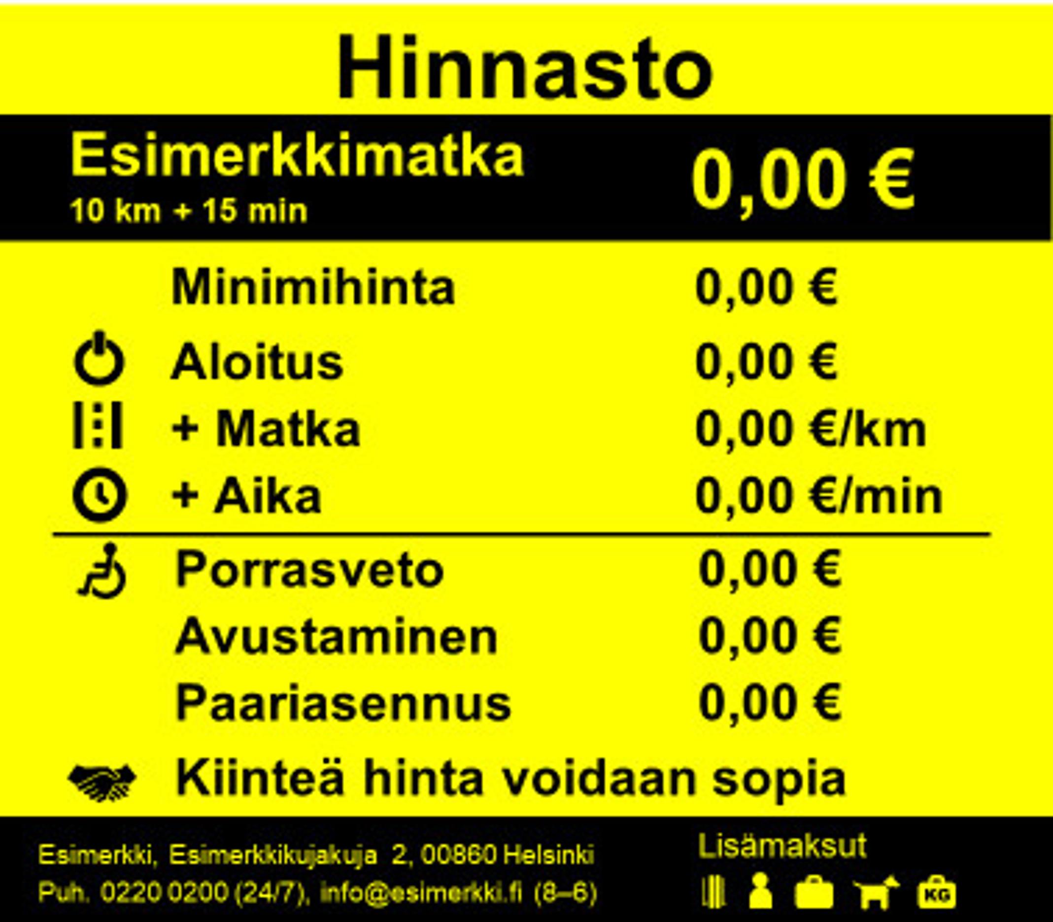 Takseissa olevat keltamustat hinnastot ovat jo monille matkustajille tuttuja. Nyt hinnaston sisältöön tulee muutoksia. Hinnastossa on oltava muun muassa esimerkkimatkan hinta ja hinnastosta on käytävä ilmi, jos erityisryhmille tarjotaan lisäpalveluita.