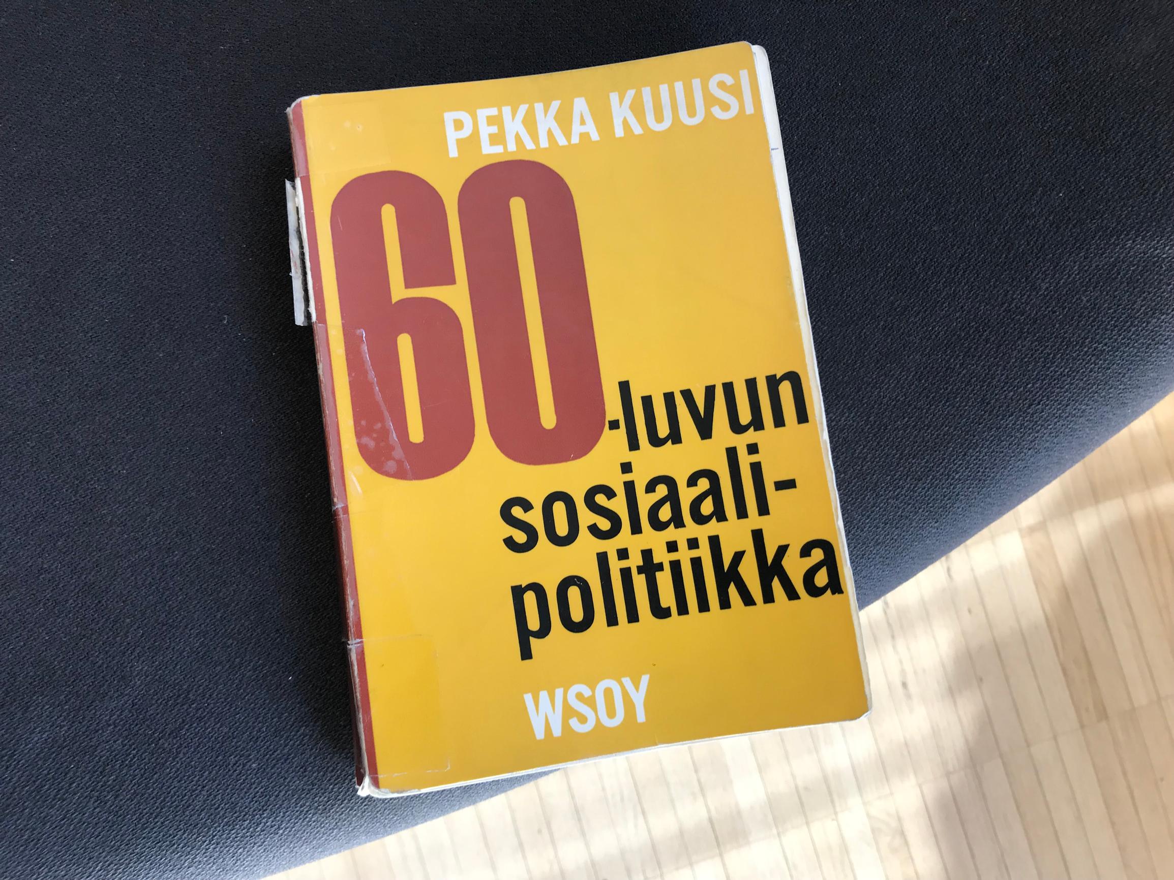 Pekka Kuusi johti Sosiaalipoliittisen yhdistyksen neuvottelukuntaa ja alkoi koota tutkimustietoa sosiaalisten uudistusten ja kansanterveyslain perustaksi. Kuusi tiivisti näkemykset teokseksi 60-luvun sosiaalipolitiikka. Kirja on hämmästyttävän ajankohtainen, selkeä ja ilo lukea.