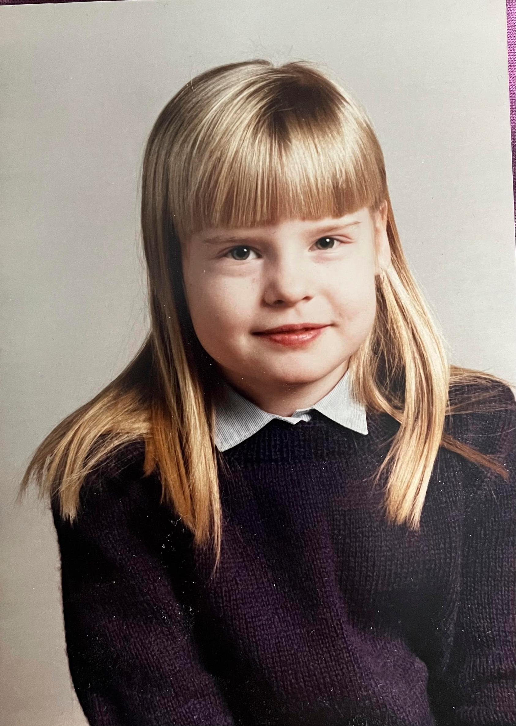 Kuvassa valtiovarainministeri Riikka Purra toisen luokan luokkakuvassaan.