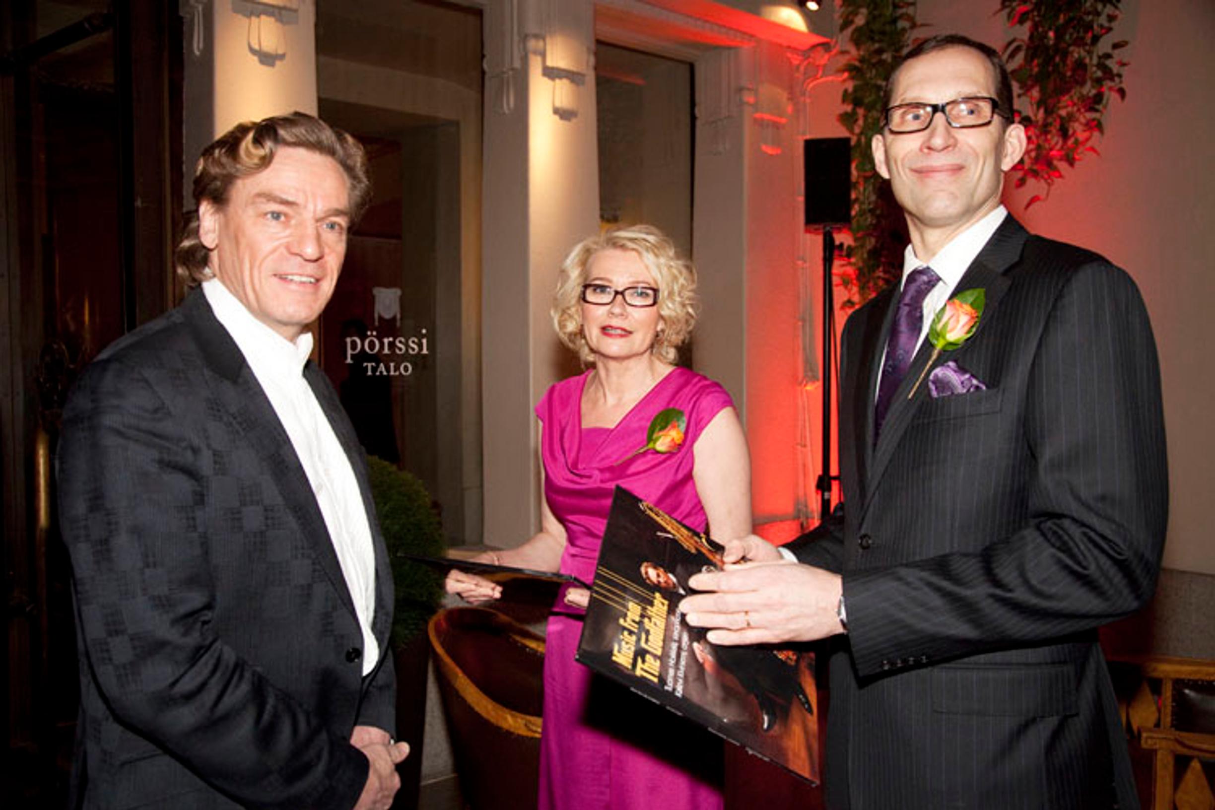 Taidekeskus Salmelan isäntä Tuomas Hoikkala toi musiikkiaan Eevan päätoimittajalle Riitta Nykäselle ja A-lehtien toimitusjohtajalle Juha Blomsterille.