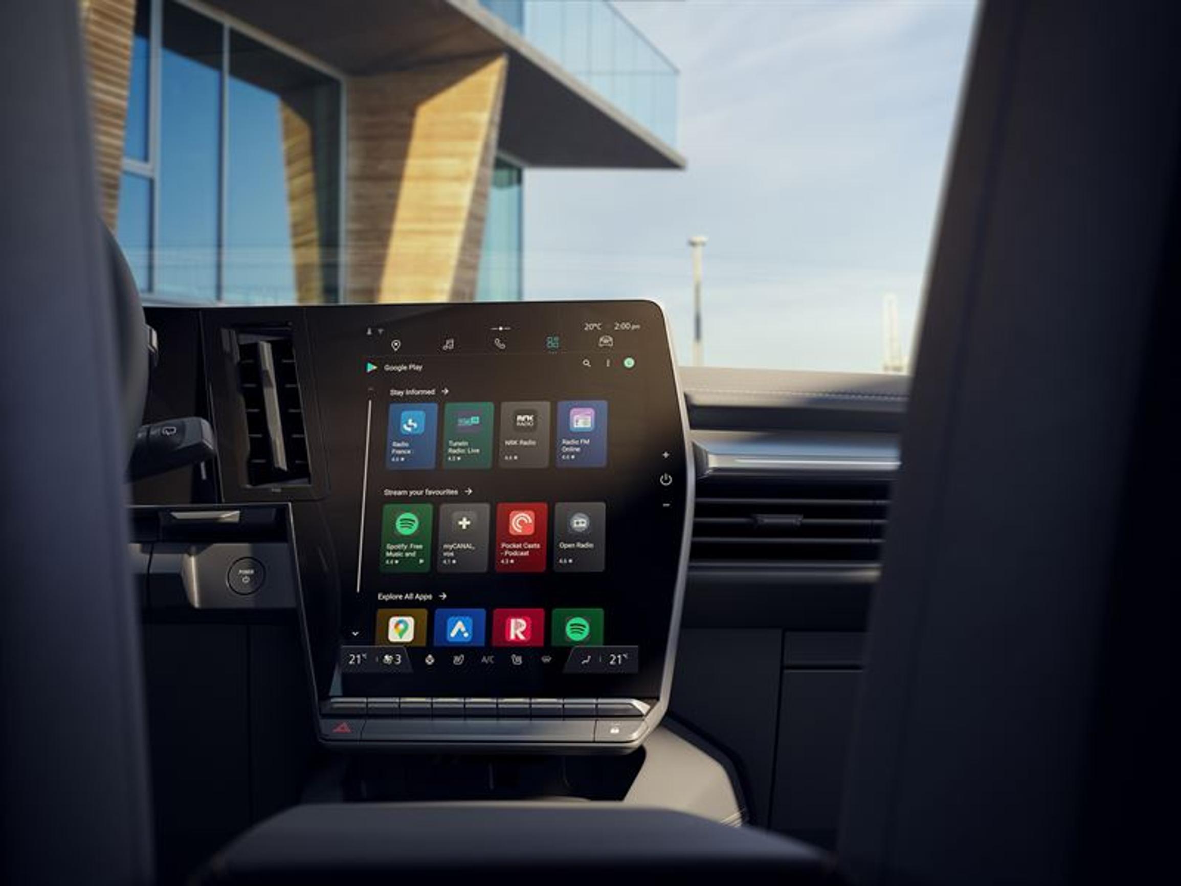 Kojelaudan keskellä oleva näyttö on muunneltavissa hyvin monipuolisesti niin sisällön kuin värien suhteen. Liitettävyys on tärkeässä osassa tieto-viihdejärjestelmää ja siinä käytetään Android Automotive OS:ää. Googlen kehittämä järjestelmä tuo Mégane E-TECH Electricillä ajavien käyttöön niin Google Mapsin kuin Google Assistantin. Järjestelmän käyttö on yhtä vaivatonta kuin älypuhelimen ja tarjolla on erittäin paljon monipuolisia sovelluksia. Ääniohjauksella saa henkilökohtaiselta sihteeriltä (Google Assistant) vastaukset ja ratkaisut lähes kaikkiin ongelmiin.