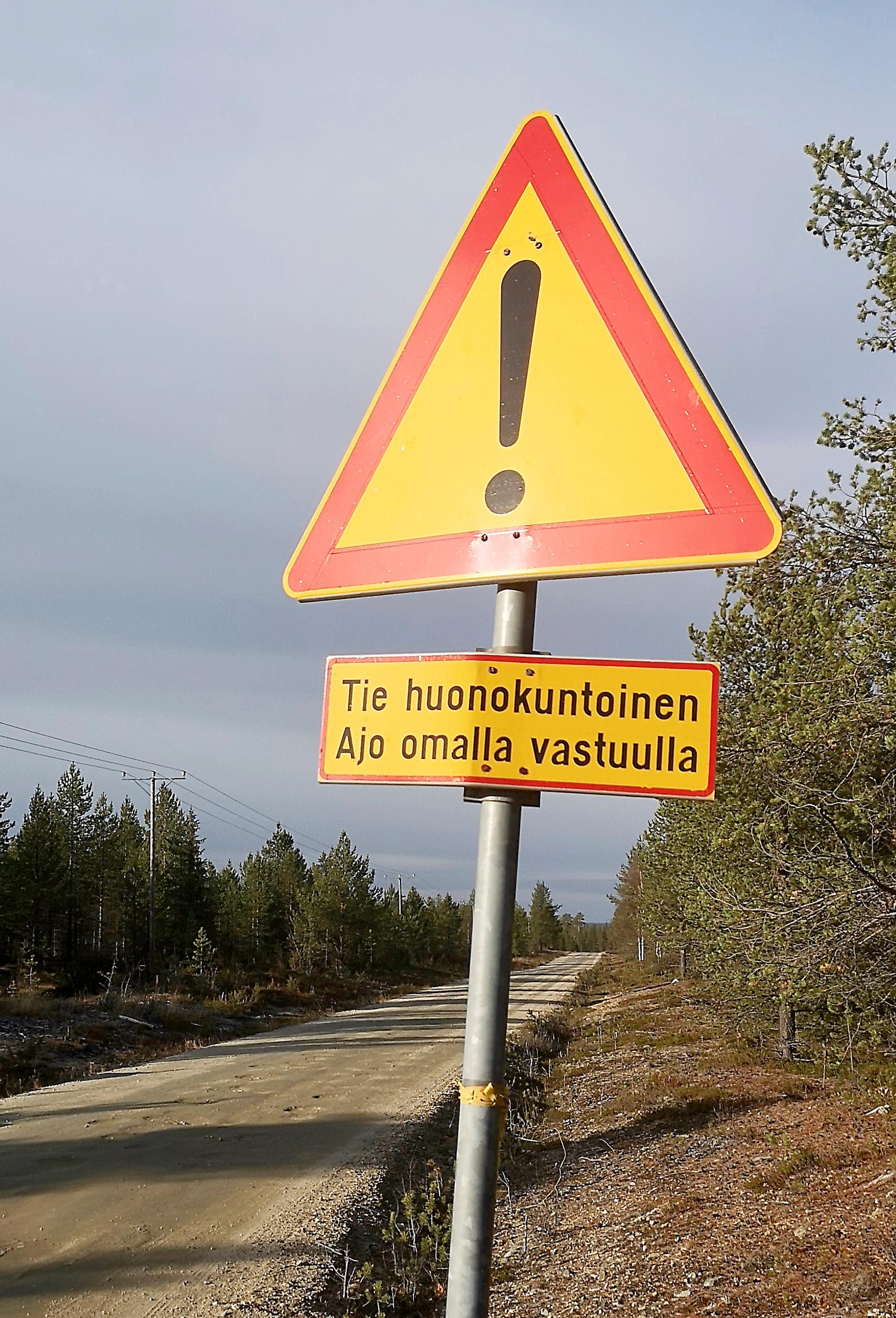 Tie läskikapinan työmaalle haarautuu puolessa välissä matkaa Tuntsan pubille. Sitten onkin otettava jalka kaasulta ja pysähdyttävä: ”Ajaminen omalla vastuulla.” Näin kertoo kyltti.