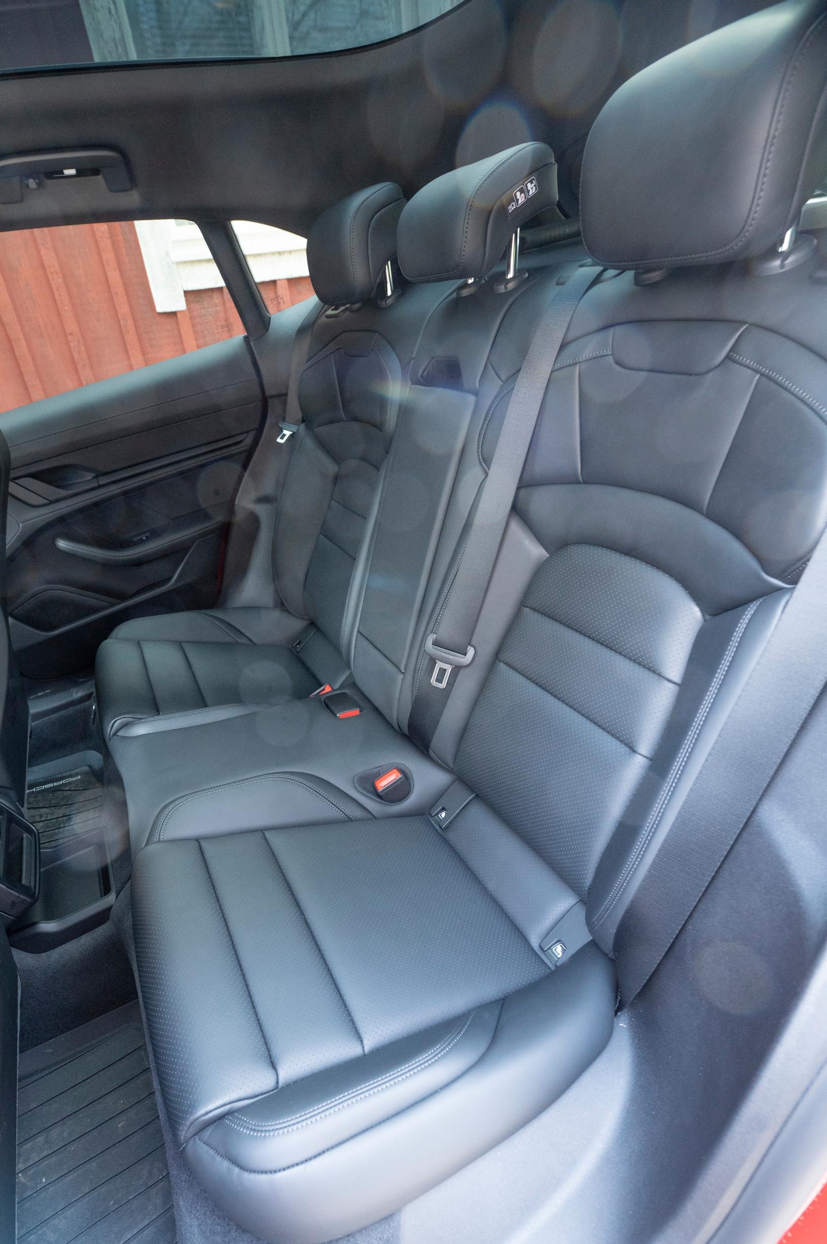 Cross Turismon juttu on perus-Taycaniin verrattuna auton peräpään erilainen muotoilu ja suurempi tavaratila. Ulkoisesti pyöreämpi perä voisi ehkä erottua enemmänkin perus-Taycanista – nyt muodot on selkeästi pelattu varman päälle, unohtamatta auton perusluonnetta. Eikä takatavaratilakaan mikään erityisen suuri ole, esimerkiksi kaukaisen konsernipikkuserkun Skoda Octavian konttiin verrattuna. Mutta Porscheen se on poikkeavan kookas. Taka- ja etutavaratilat yhteen laskettuna litroja kertyy 530 – ihan kelpo lukema kuitenkin.