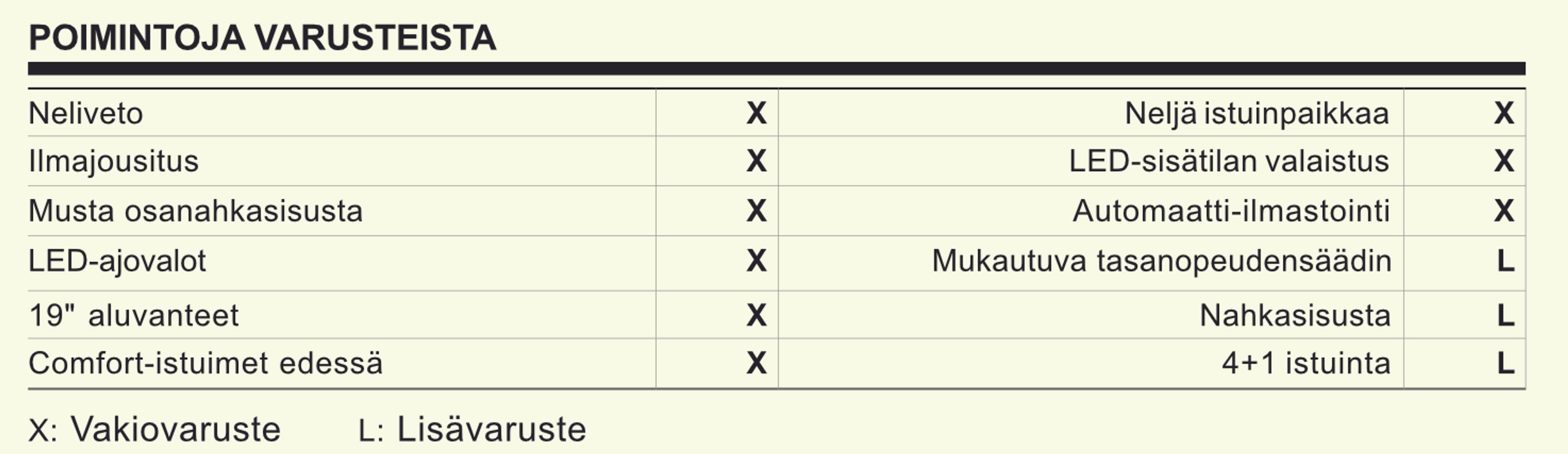 Lisävarusteena saatava Off-Road Design -varustepaketti korottaa maavaraa 30 millimetrillä. Ei tämä silti mikään maastoauto tietenkään ole.