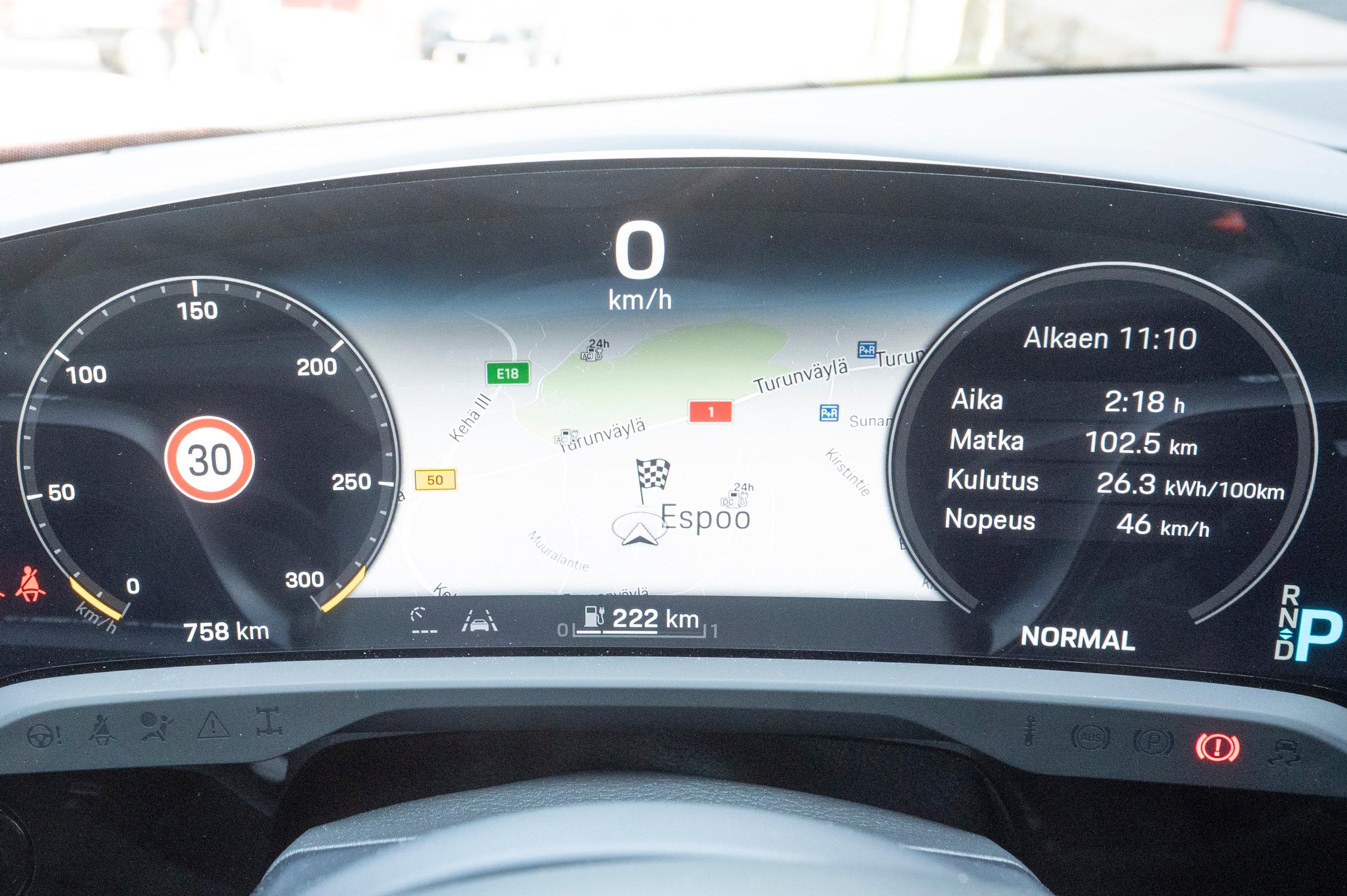 Koeajojaksolla keskikulutus asettui hieman ajosuoritteesta riippuen 24,2–25,8 kWh tuntumaan sadalla. Auton suorituskyky huomioon ottaen kulutus on hyvin aisoissa. Liitettävyys älypuhelimen kanssa sujui langattomasti ilman ongelmia, ja kotilataus 11 kWh:n teholla kuin vettä vaan.