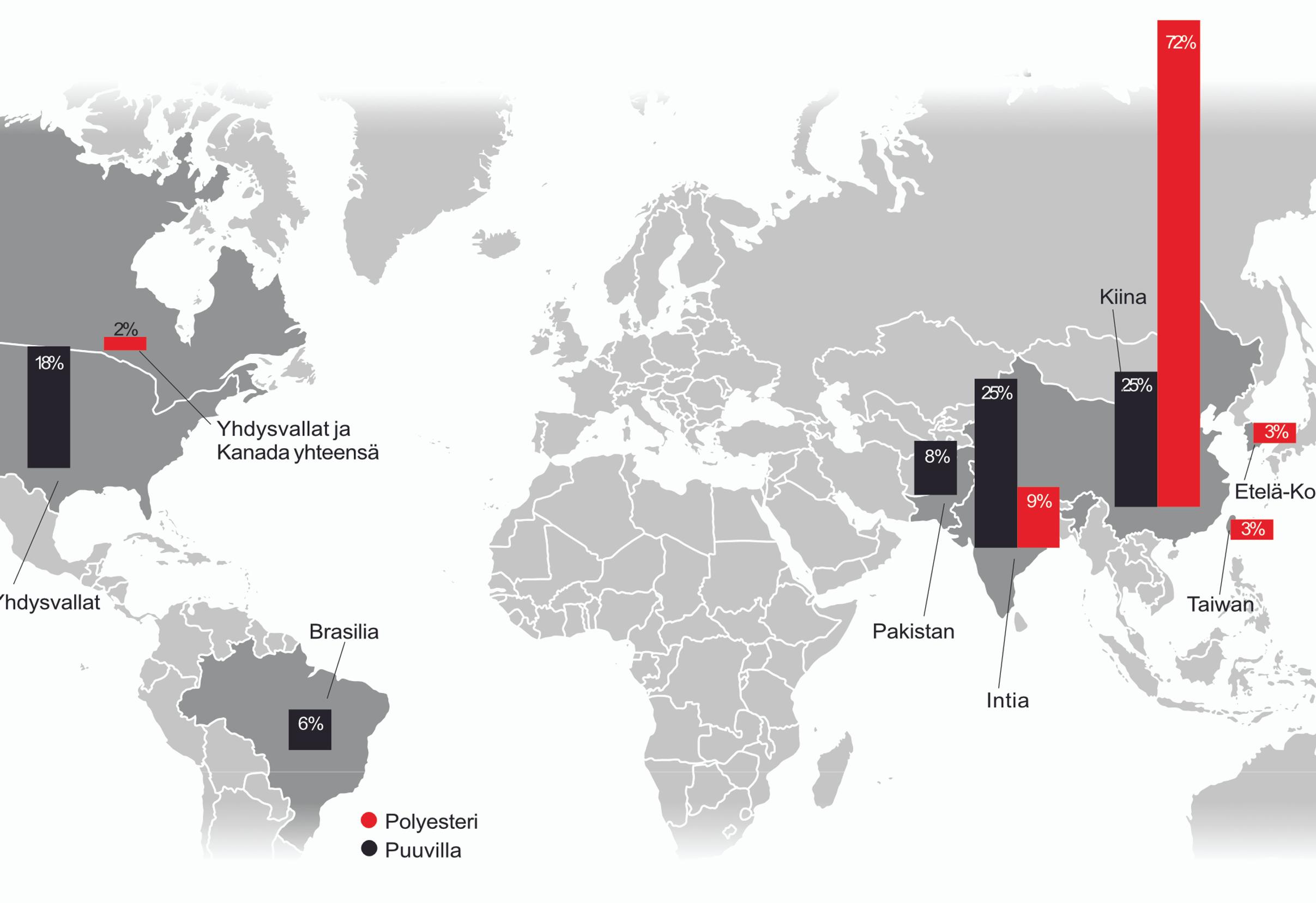 Polyesterin ja puuvillan suurimmat tuotantomaat