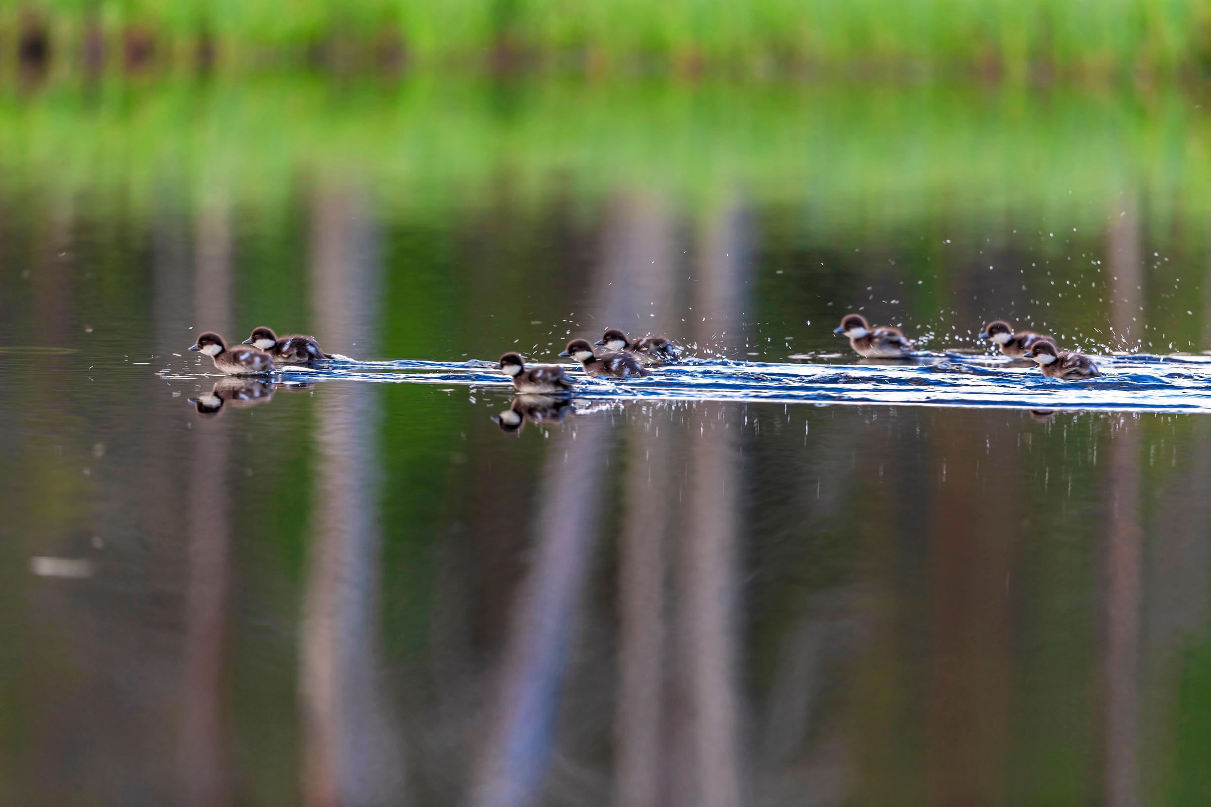 On kesäkuun ensimmäinen puolisko, ja menneet viikot ovat olleet itärajalla tasaisen lämpimiä. Se on tarjonnut naaraalle otolliset olosuhteet ensin munia, sitten hautoa ja lopuksi opastaa poikasensa lammen äärelle ruokailemaan ja kasvamaan.