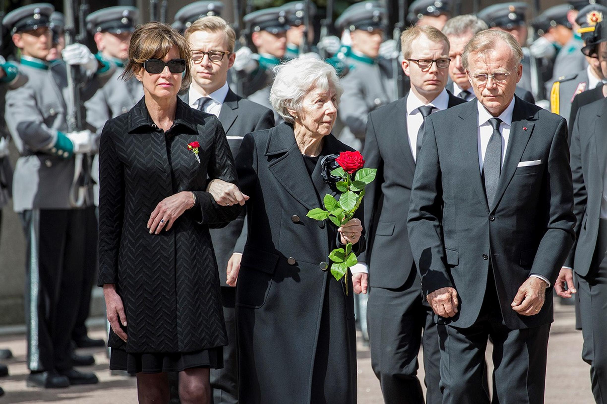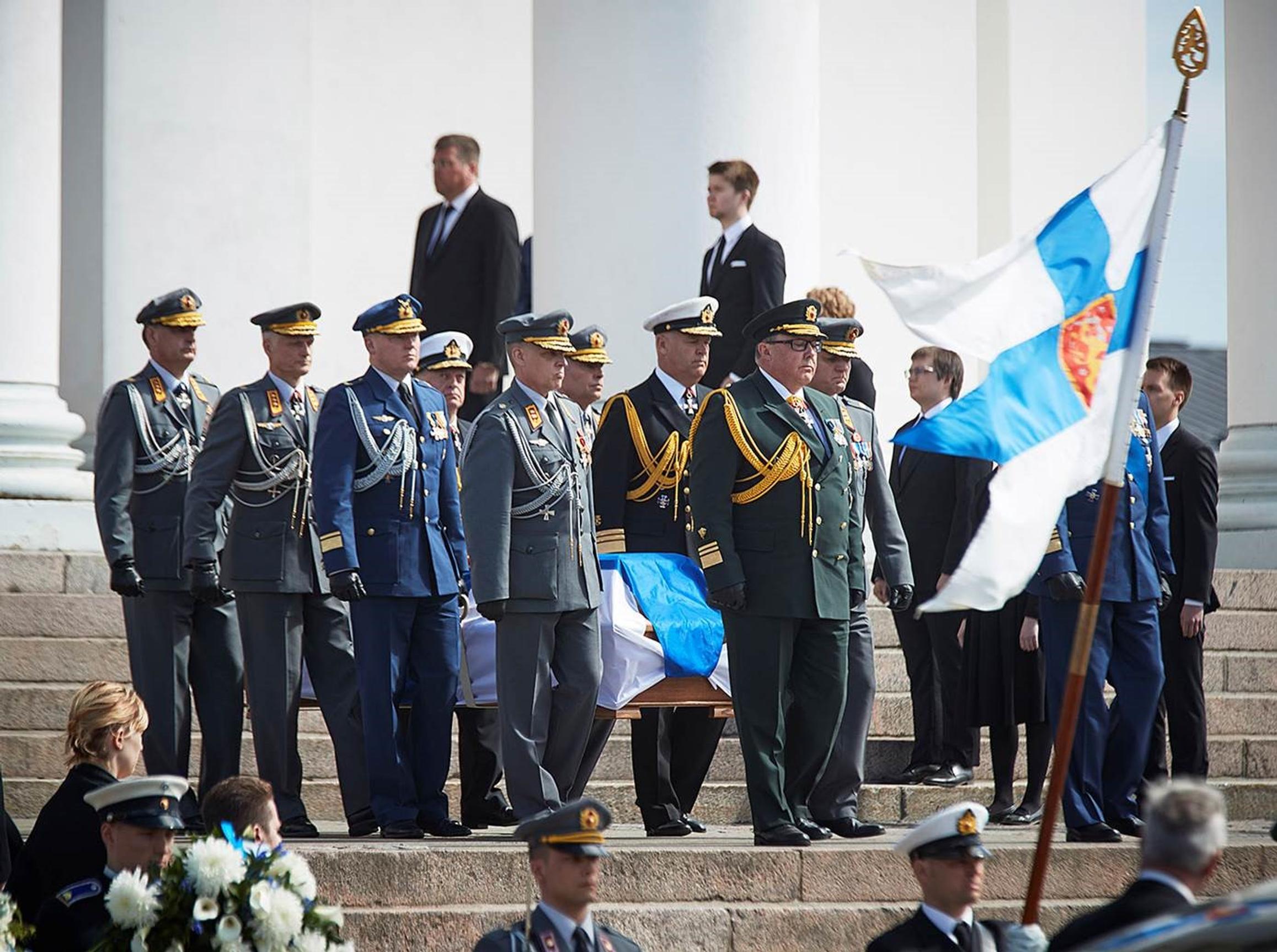 Omaisten takana seisoi Suomen korkein valtiojohto, sen vierellä tasavallan presidentti Sauli Niinistö ja hänen puolisonsa Jenni Haukio, presidentti Martti Ahtisaari ja puoliso Eeva Ahtisaari, presidentti Tarja Halonen ja puoliso Pentti Arajärvi.