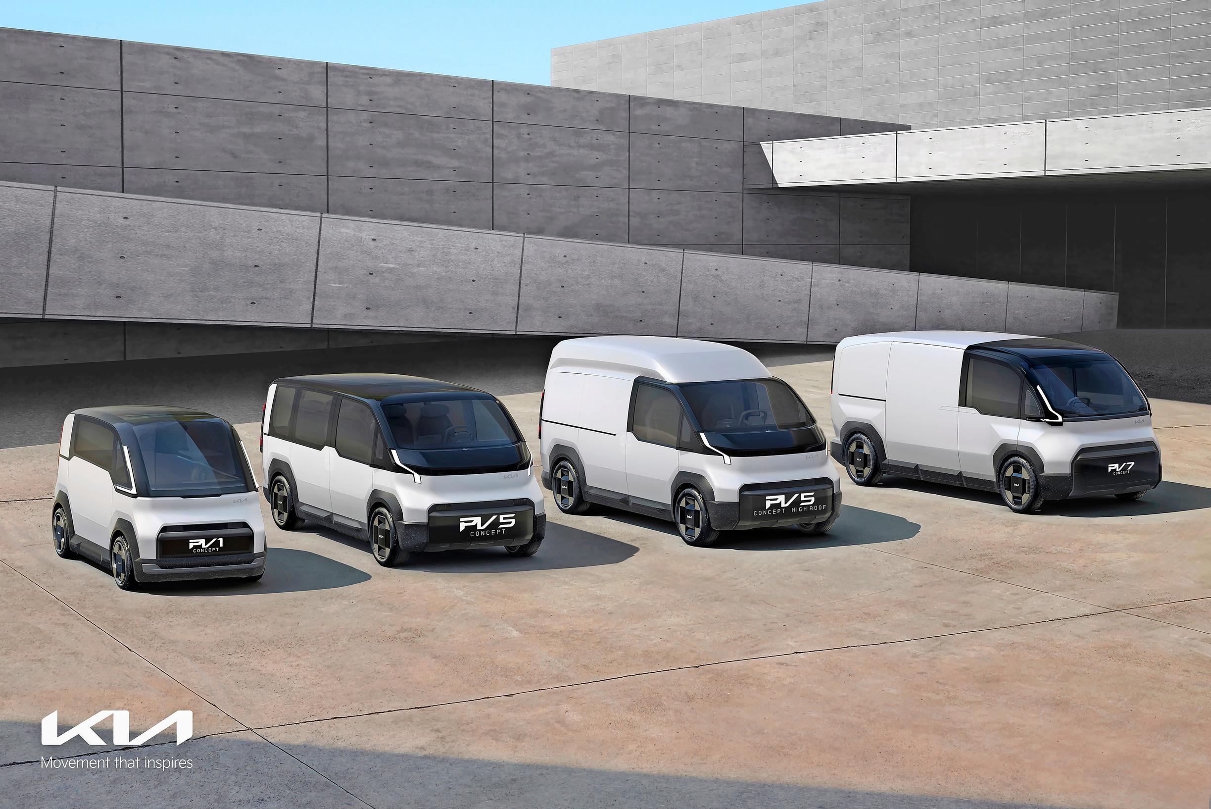 Kia EV 9 on jo jonkinlainen SUVin ja tila-auton risteytys, mutta yläkuvassa keskellä olevat kaksi PV5-konseptia antavat lupauksen vielä enemmästä. Ja vaikka ne ovatkin vielä virallisesti konsepteja, Kia on vahvistanut PV5:n tulevan tuotantoon ensi vuonna. Sen pohjana on uusi PBV-perusrakenne (Platform Beyond Vehicle), joka mahdollistaa entistä joustavammin erilaisten, asiakkaiden tarpeiden mukaan räätälöityjen korirakenteiden asentamisen saman pohjalevyn päälle. Siksi jo ensimmäisessä vaiheessa PV5:stä on saatavana erilaisia versioita. Autonominen ajaminen on myös tila-autojen kohdalla selvä teema, ja lähitulevaisuudessa Kia aikoo esitellä Motionalin kanssa kehitetyn Robotaksin.