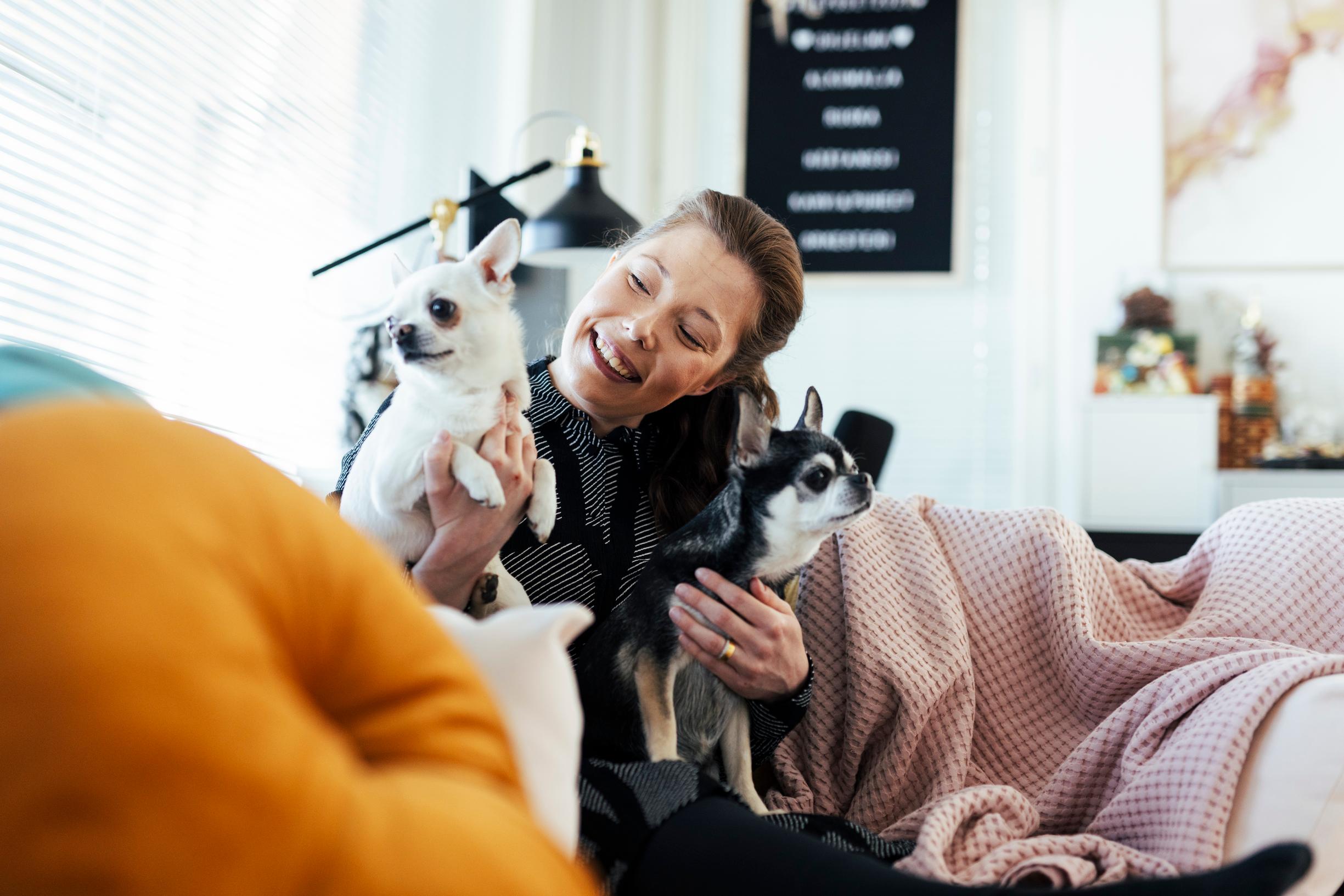 Asuu: Aviomiehensä ja kahden chihuahuan kanssa Lahdessa.