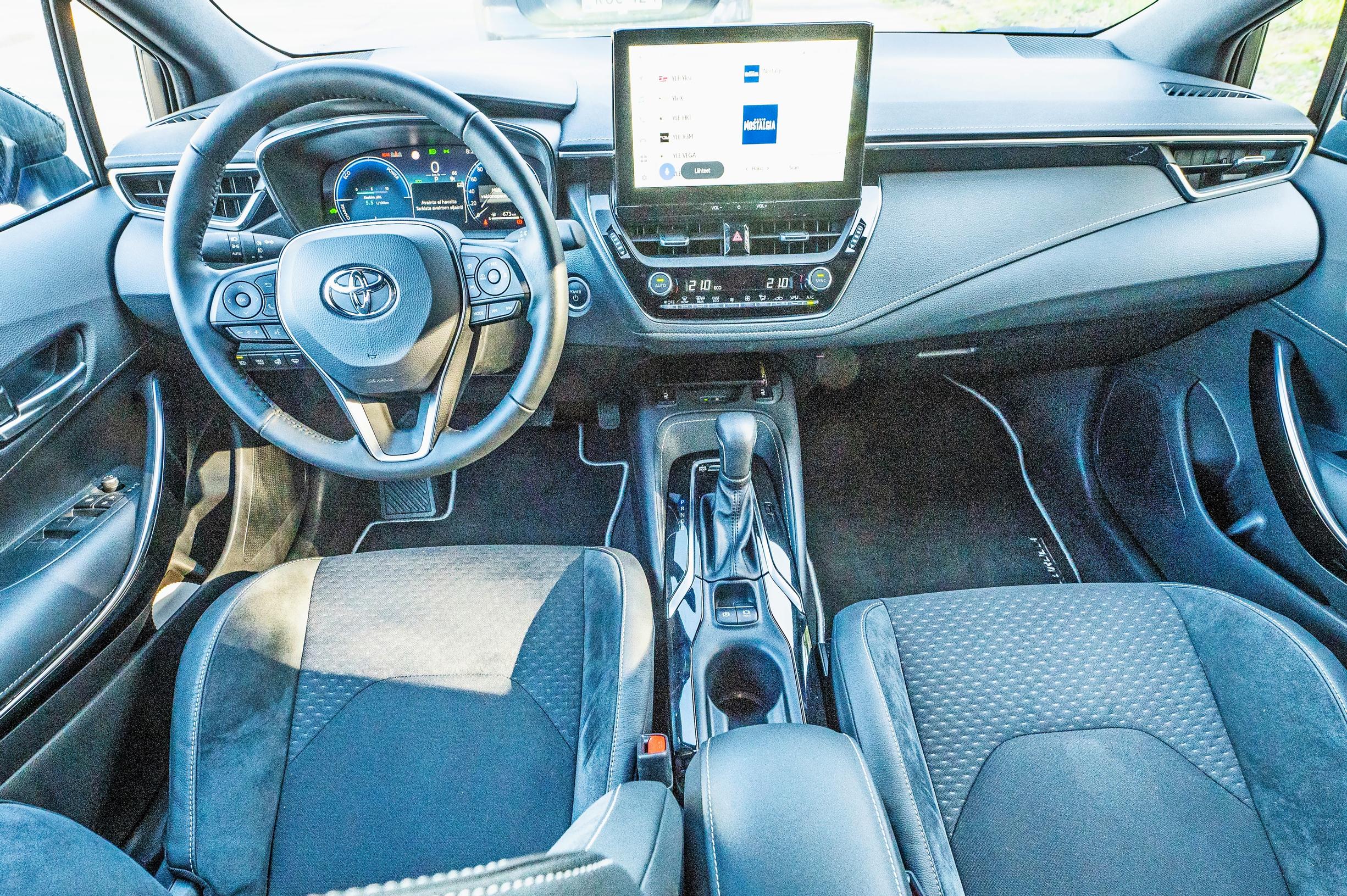 Sisällä asiat ovat Toyotalle tyypilliseen tapaan mutkattomasti paikoillaan. Uudistetut värivaihtoehdot, verhoilumateriaalit ja kuvioinnit luovat harmonisempaa vaikutelmaa, eli Toyotalle monesti ominaista harmautta on nyt entistä vähemmän. Päivityksessä painotetaan myös digiajan mahdollistamia ominaisuuksia. Kojelaudan 10,5-tuumainen medianäyttö näyttää HD-tasoista kuvaa kaikissa valaistusolosuhteissa. Valitusta varustetasosta riippuen mittaristo perustuu 12,3-tuumaiseen näyttöön, jonka sisältö on nyt muokattavissa – ei tosin kaikkein intuitiivisimmalla tavalla.