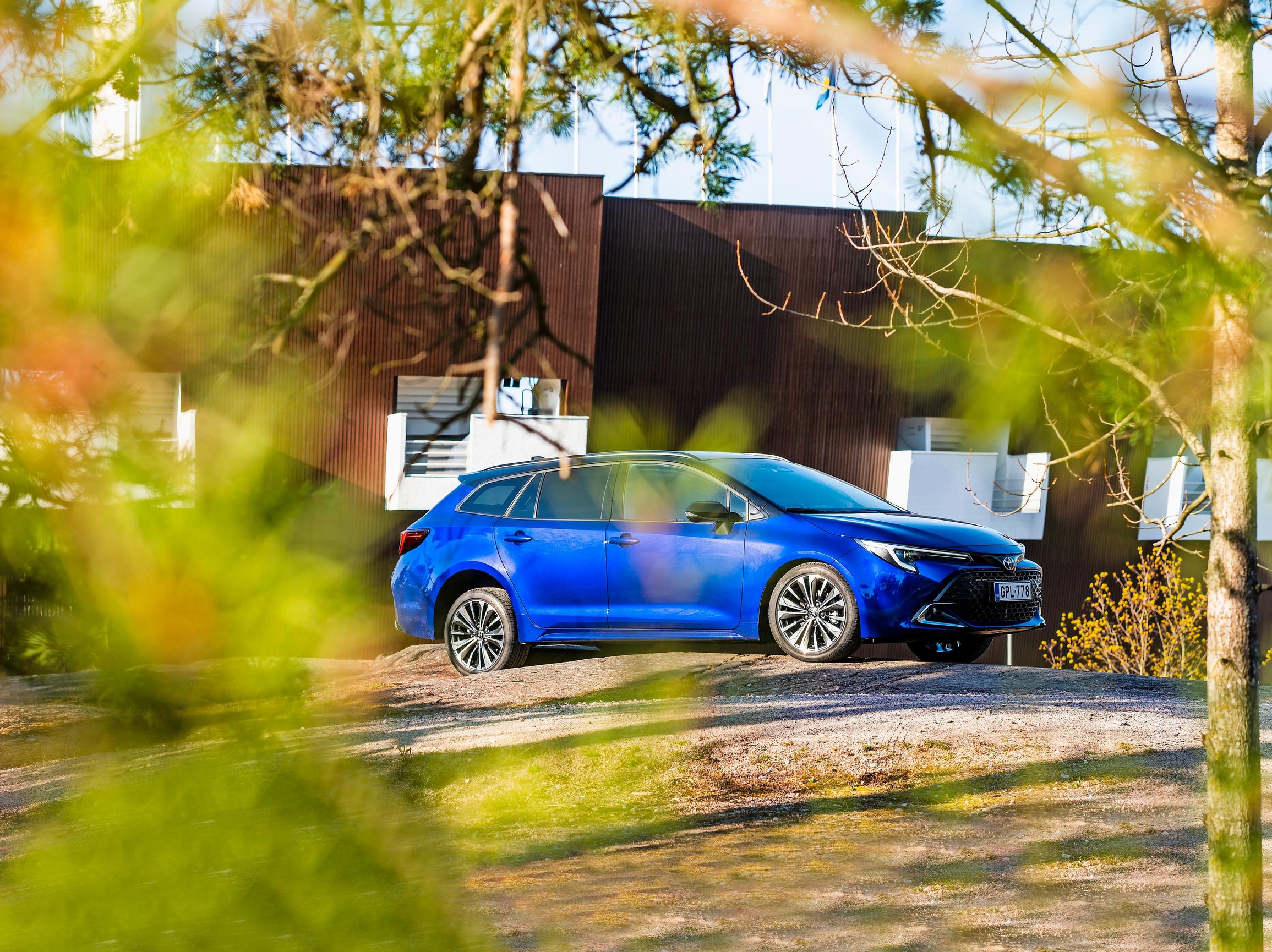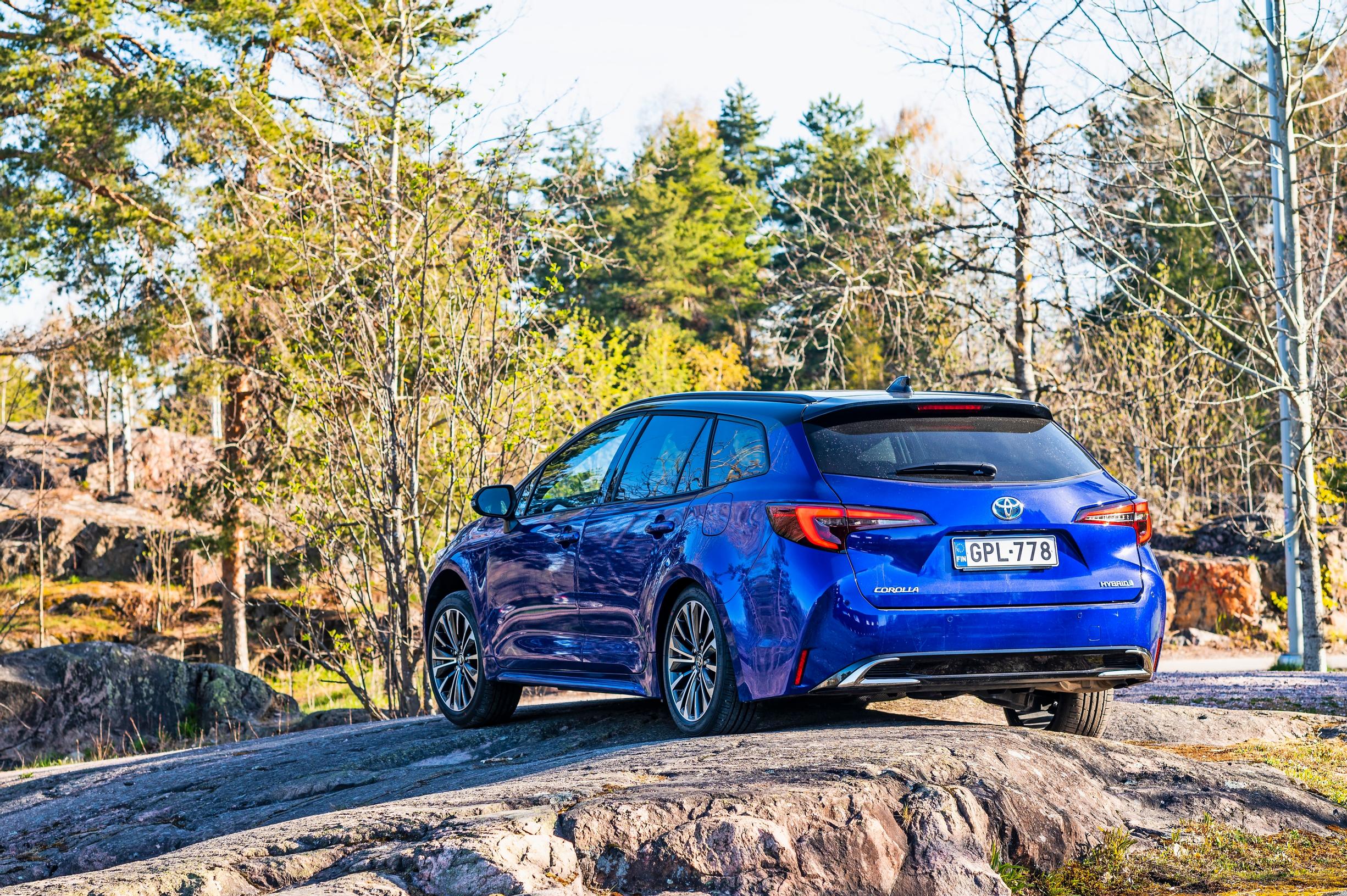 Autosta on kolme eri korimallia: hatchback, sedan ja farmari. Lisäksi Corolla-nimeä kantaa neljäs, korotettu Corolla Cross -versio. Kolmesta ensimmäisestä koeajomme Touring Sports -farkku on kuitenkin ehdottomasti suosituin Suomessa, sillä sen osuus kokonaismyynnistä on noin 90 prosenttia – Corolla Cross erikseen laskettuna.