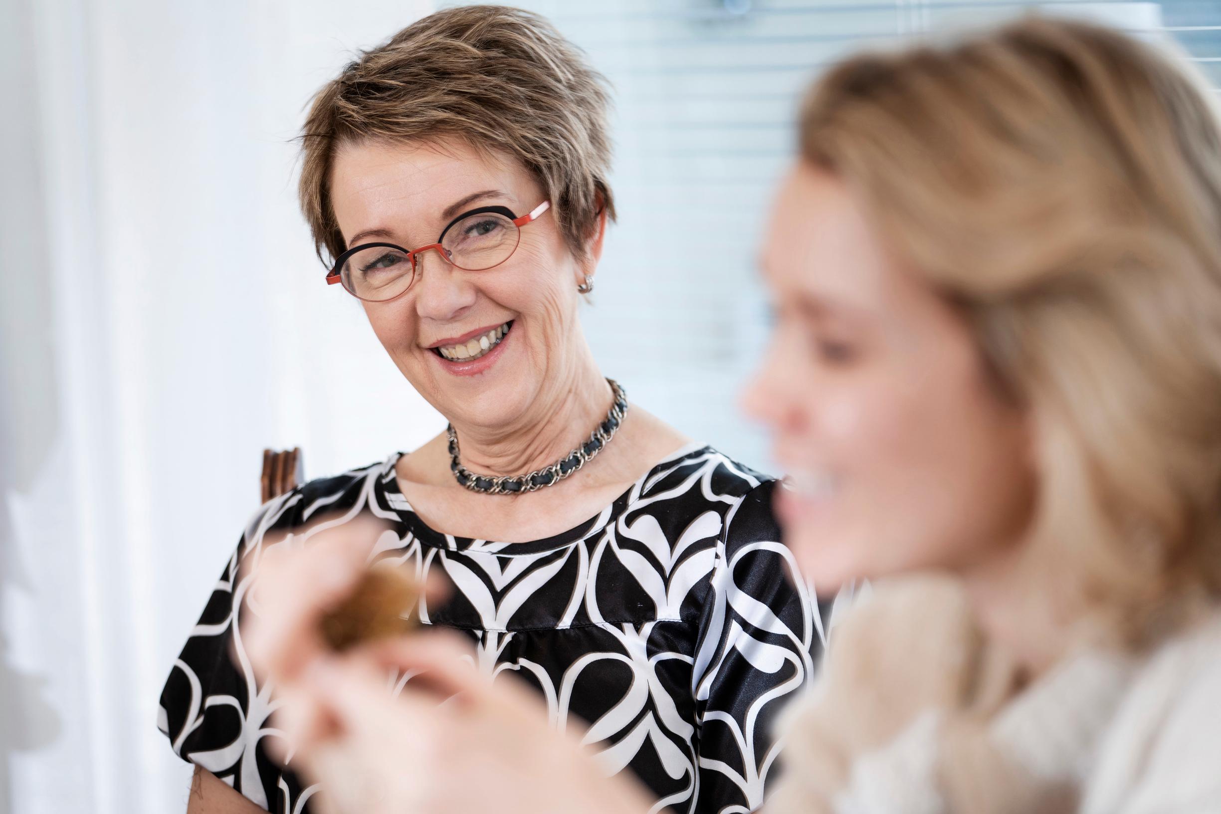 Tuija Pehkonen katsoo äitiään myötätuntoisesti.